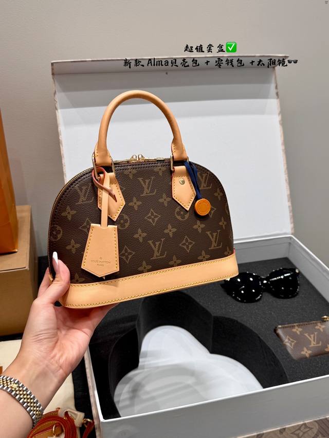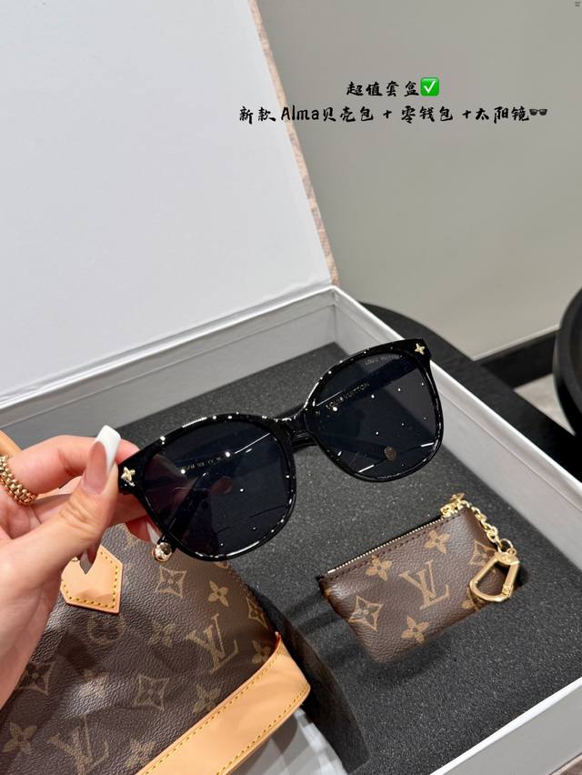 / Value set Lv Alma shell bag pendant coin purse sunglasses gift box size 25*20cm