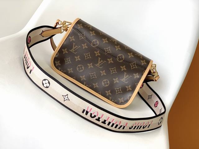 Variable Code Chip M45985 Black M46049 Rose Red Top-Tier Original Diane Handbag. This bag reimagines the classic 1990s design, incorporating vintage elements such as leather corner protectors and traditional clasps into the Monogram canvas body, along with pockets and a neat interior. The wide jacquard shoulder strap features the striking Louis Vuitton logo on one side and the Monogram flower on the other. 24.0 X 15.0 X 9.0 cm (Length X Height X Width)