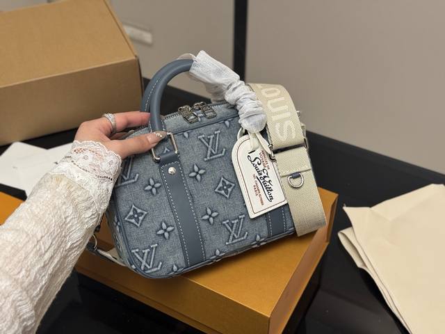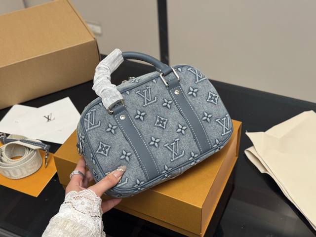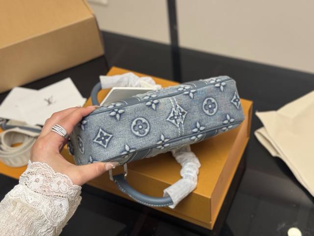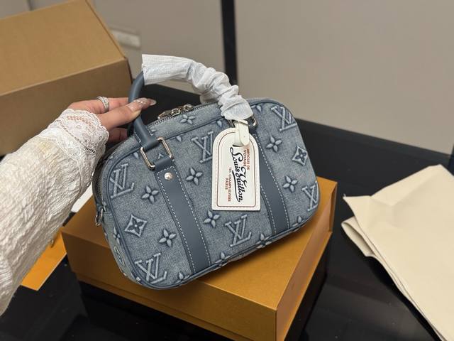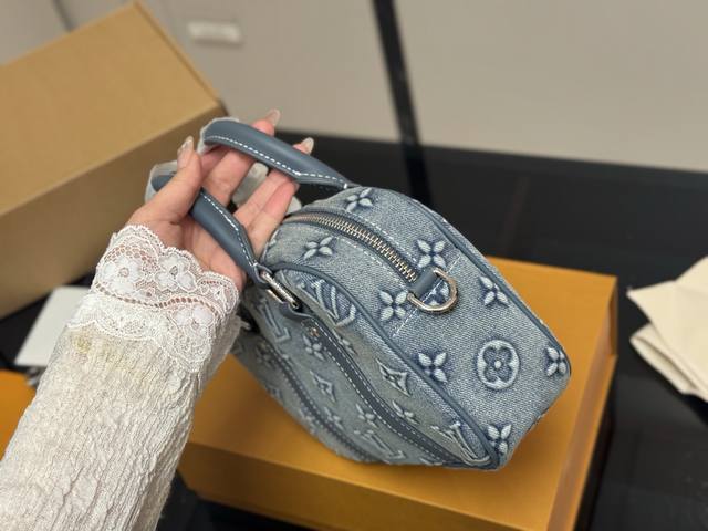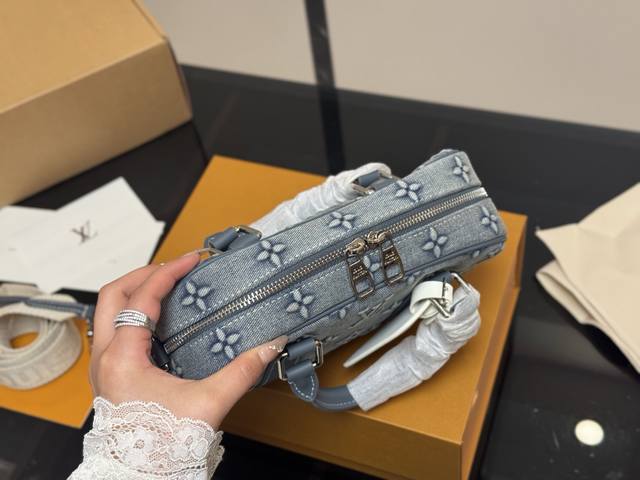 / With folding box airplane box Size: 20.12Cm Lv Trail denim New men's camera bag!