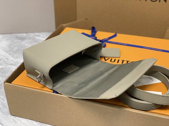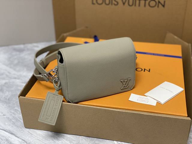 Top-Tier Authentic M82281 Green Full-Leather Men's Messenger Bag Series Fastline Mini Handbag The Fastline Mini Handbag Combines Grained Calf Leather And Metal Hardware, With A Flap-Style Diagonal Cut Detail And Lv Initials On The Front Corners, Highlighting The Signature Design Of The Aerogram Series. The Removable Shoulder Strap Allows For Multiple Carrying Options.Detailed Features: 17.3 X 12 X 7 Cm.