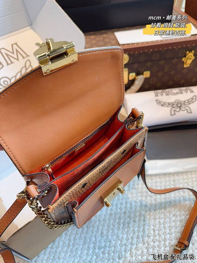 Comes with a box. The Mcm accordion bag combines beauty and practicality. Classic and studded designs feature a front flap for perfect privacy. The accordion-style compartments offer ample space, and the shoulder strap is detachable and adjustable. The bag has a sturdy, layered texture and looks very sophisticated. Perfect for commuters, it's also great as a crossbody bag. Pair it with a coat for a stunning look. Dimensions: 18*9*14cm