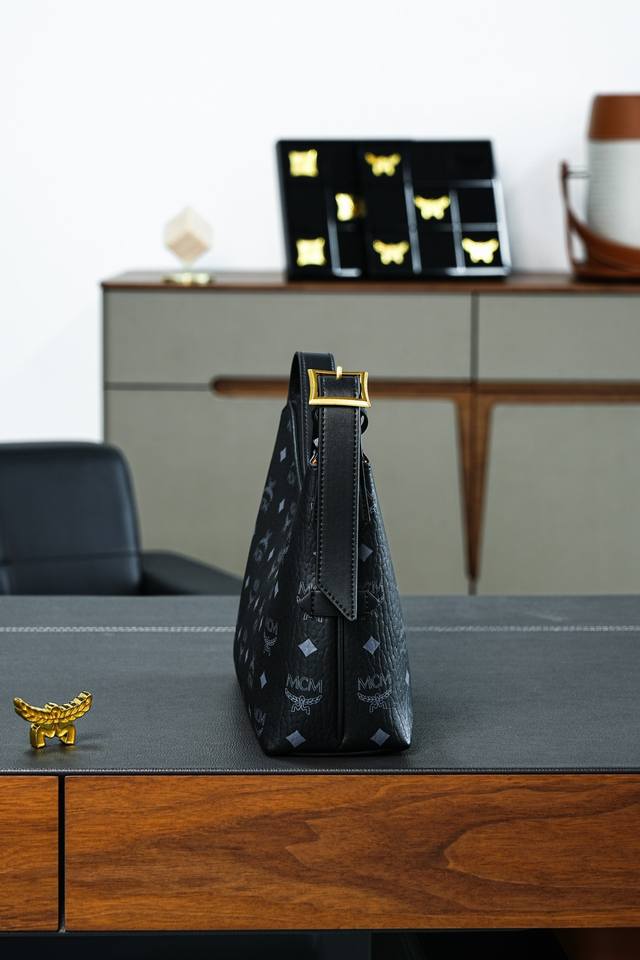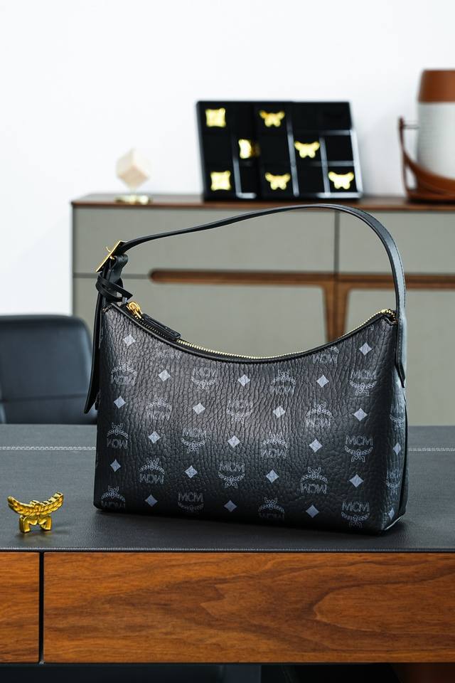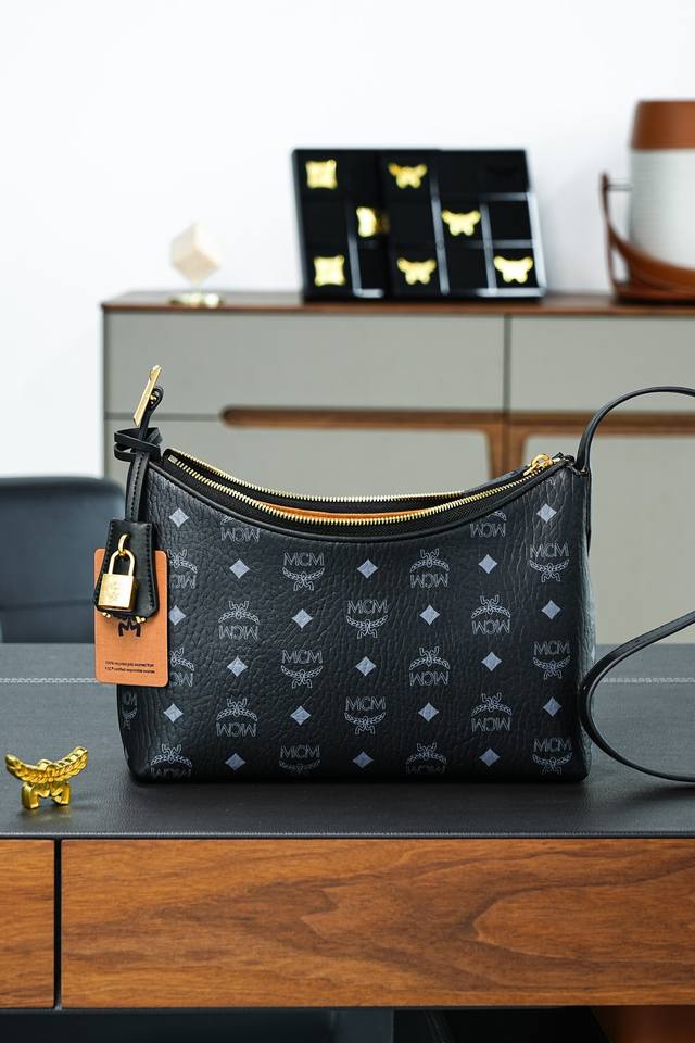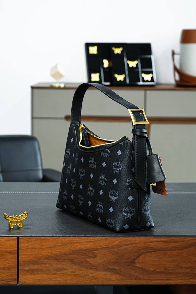 This item is a new modern interpretation of the classic casual style, achieving an ideal balance between softness and width. This small Aren Hobo shoulder bag adopts the design elements of traditional Mcm suitcases, including a detachable leather tag and engraved logo padlock, which adds the icing on the cake.