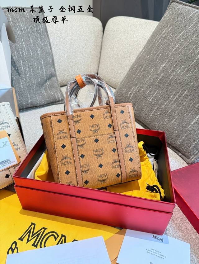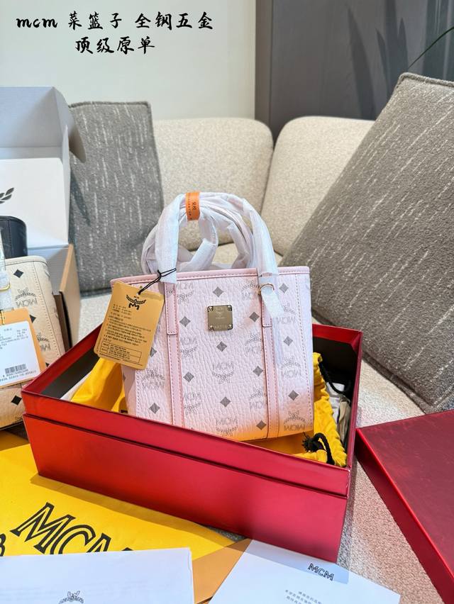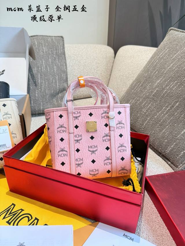 Mcm shopping basket new size mini peach pink shopping basket