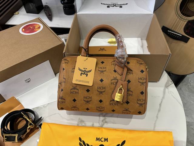 Comes with airplane case. Size: 25cm. Mcm pillow bag. Cute and playful. Can be worn as a shoulder bag, handbag, or crossbody bag.