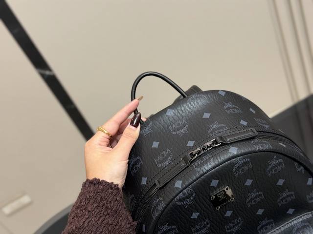 Mcm Classic Backpack. The structured and natural floral cut features a symmetrical upper section along a central axis, resulting in a perfectly rounded and elegant shape. Sizes: Medium 26*33cm, Large 33*38cm.