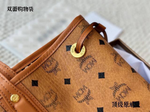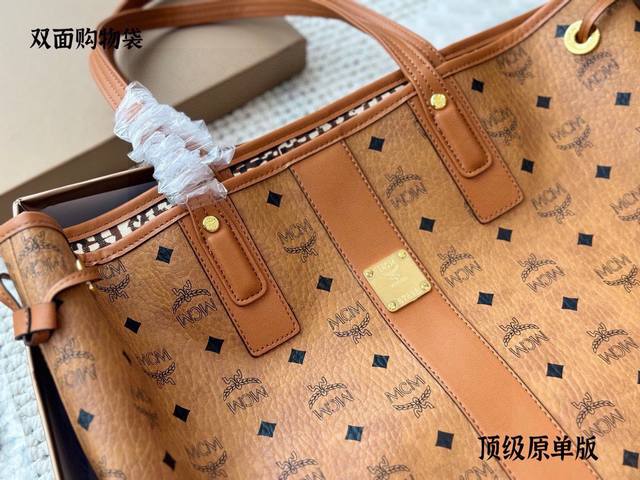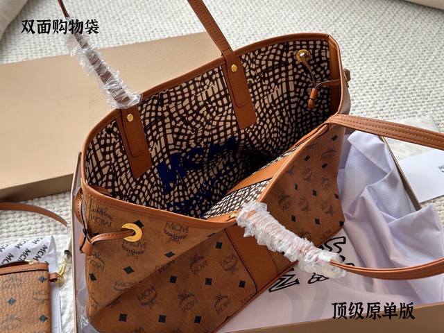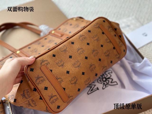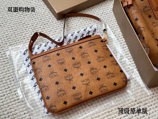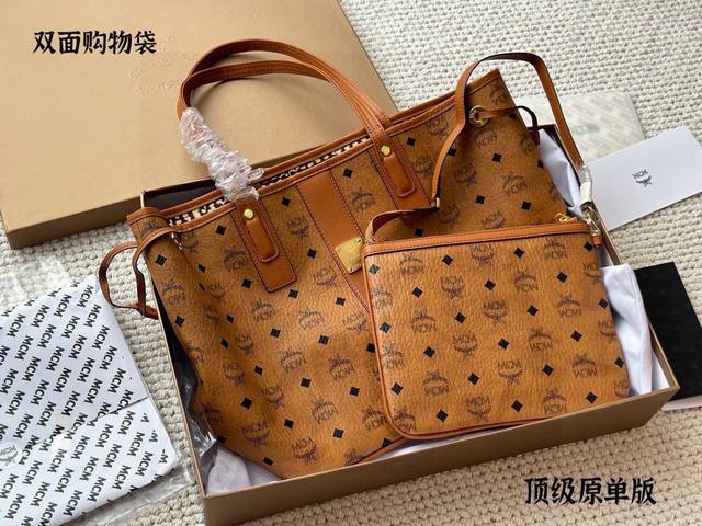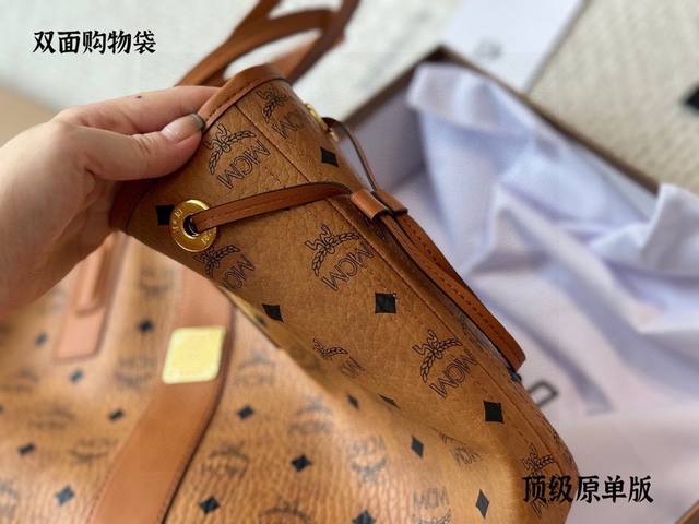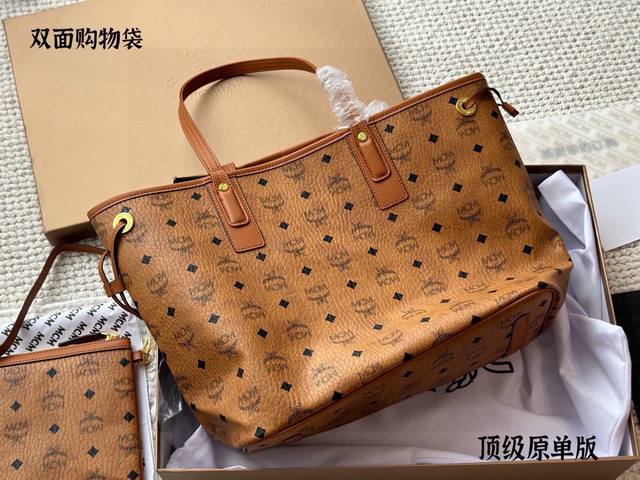 Mcm new double-sided shopping bag with easy-going style, customized hardware accessories, classic shopping bags buy one get two. Can be carried by hand, shoulder or crossbody, especially practical. A popular style. The small bag inside is detachable and extremely practical. It combines practicality and versatility. It is made of Visetos printed coated canvas with a checkered interior and comes with a detachable inner pocket. It is an ideal choice for travel or daily life. Dimensions: 35cm wide at the bottom, 29cm high, 15cm thick at the bottom. Gift box packaging
