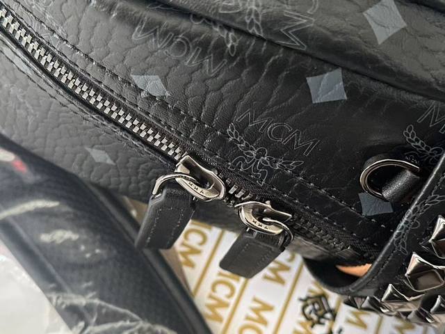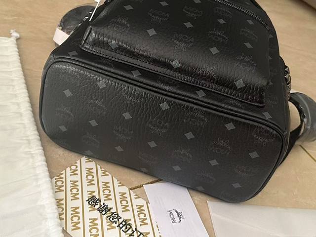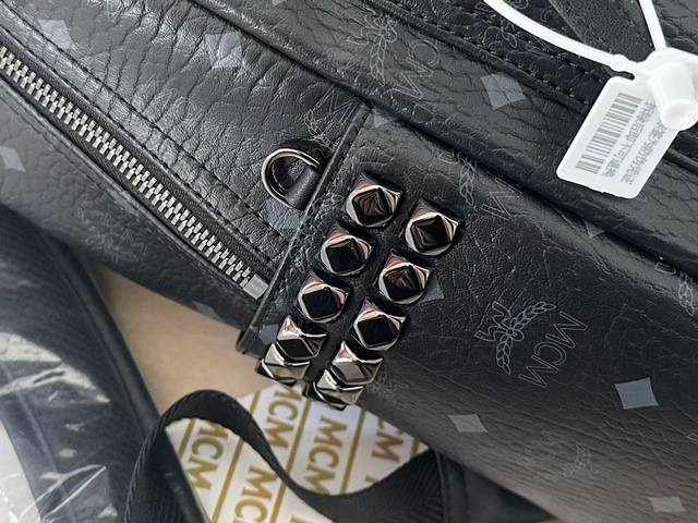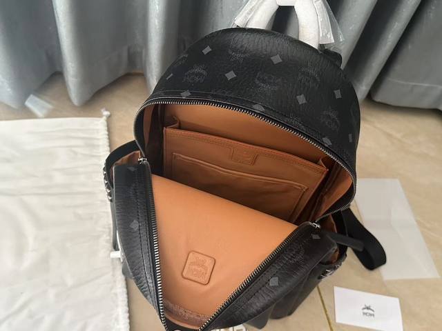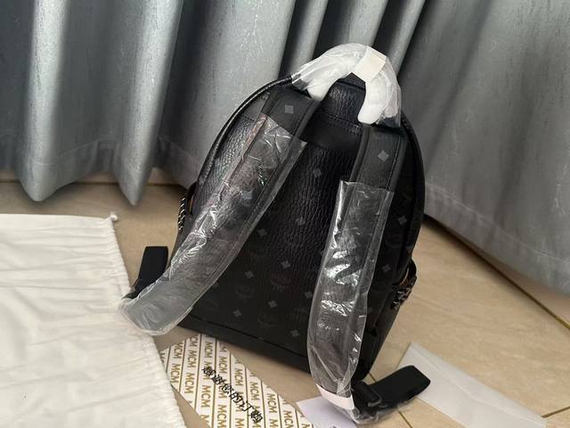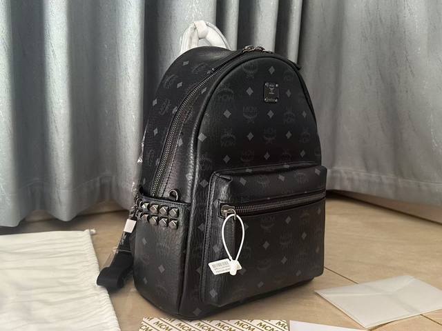 Mcm Original Small/Medium Stark Visetos Side Studded Backpack The iconic Stark backpack exudes a touch of chic style. This alluring piece is crafted from Visetos coated canvas and embellished with delicate stud detailing on the sides for a vibrant yet sophisticated look. This versatile bag features multiple pockets and an internal laptop compartment, providing ample space for your belongings. Material: PVC with cowhide. Color: Cognac. Dimensions: 38 x 30 x 13 cm. 550.