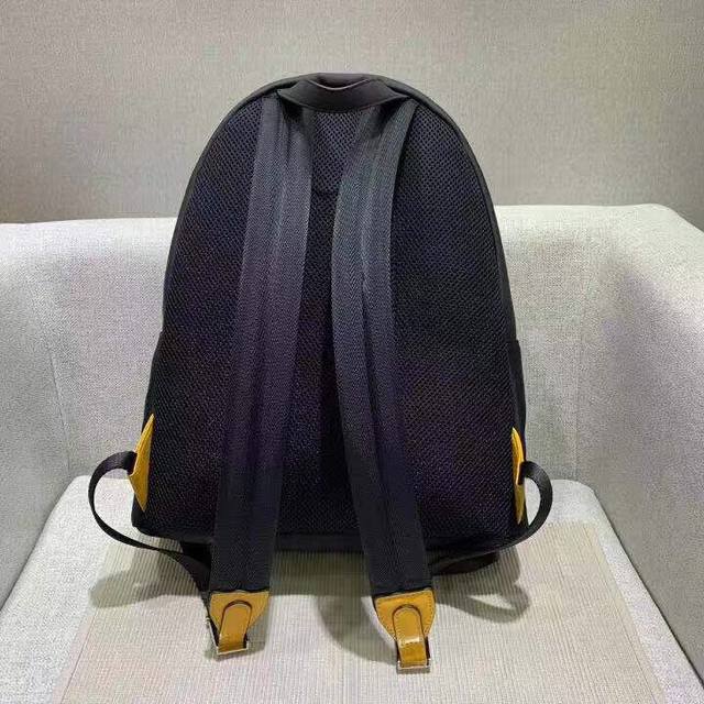 batch. Model: 33203-1 7Vz042A9Zbf0R2A Fendi Fendi counter new cloth and leather backpack shipped Fendi Little Monster backpack upgraded version original quality every detail is in line with the counter backpack nylon splicing black leather backpack embedded Bag Bugs eye pattern shape front zipper pocket leather side and handle breathable technology mesh fabric backing double zipper closure and inner pocket business travel leisure essential hot size: 32X38X12Cm