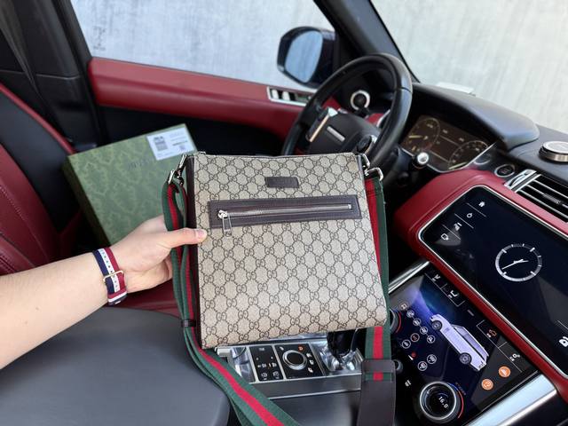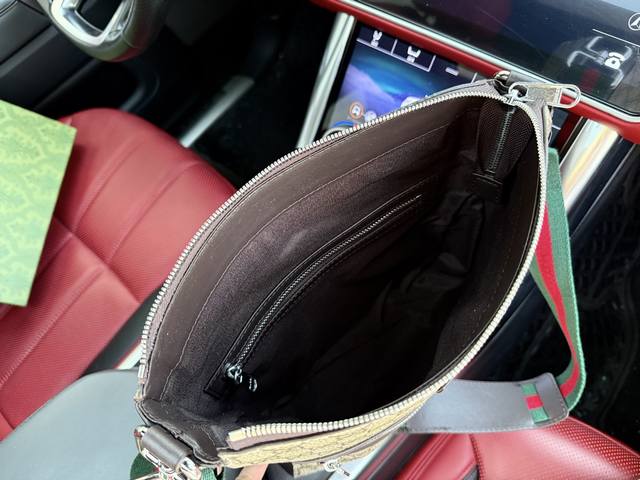 High-end new "Gucci" shoulder bag Gucci Gucci messenger bag Gucci Gucci old flower logo striped webbing shoulder strap canvas patchwork leather messenger bag crossbody shoulder bag men's ebony color #Versatile classic recommendation #High-definition hardware logo, inner compartment! Special lining. Smooth zipper, exquisite workmanship, every detail is in place! A must-have for men. Specifications: 27X28X5Cm with gift box