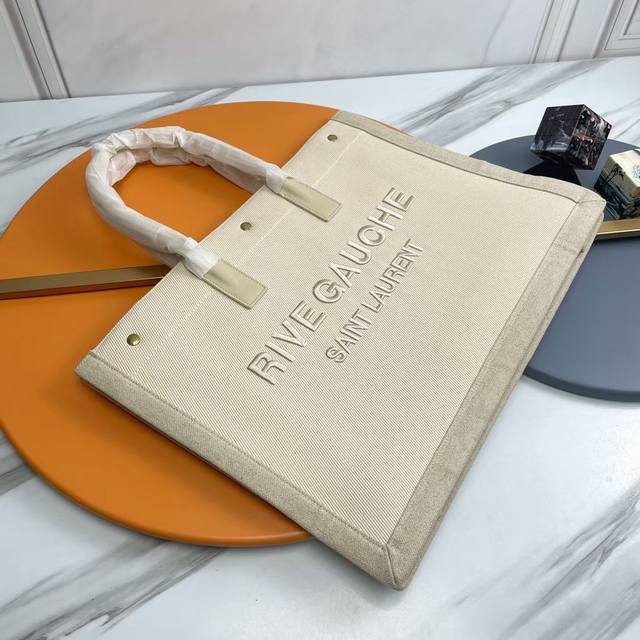 Horizontal_ Rive Gauche Tote Bag, Left Bank shopping bag, from custom linen to hardware to silk screen, every detail is perfect! Zp purchased the mold and customized it. To be honest, this is the most difficult shopping bag I have ever encountered! The tote material is extremely complicated, and it took repeated experiments to achieve the same feel as Zp! A must-have fashion model for travel and business trips! P