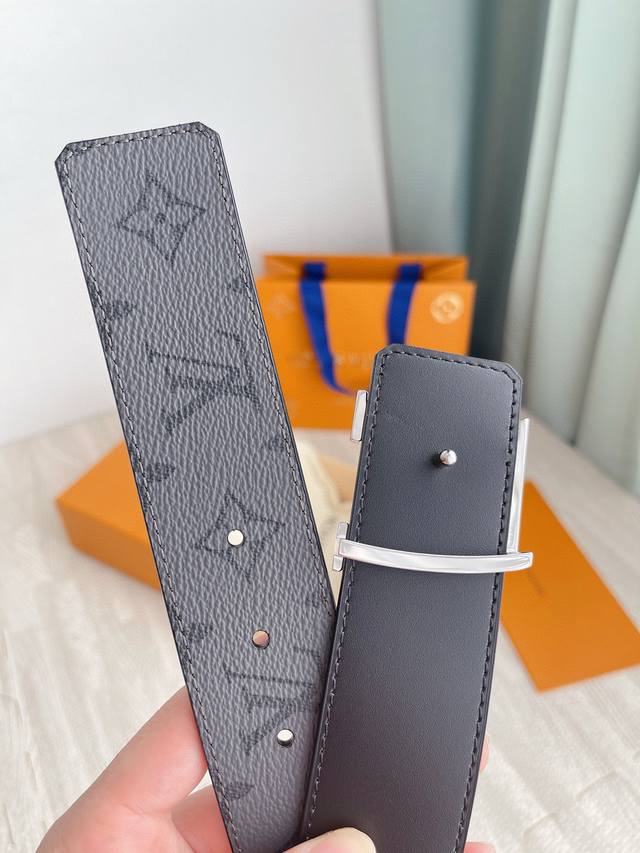 Louis Vuitton, exclusive duty-free store channel goods Lv belt series original hardware exquisite hand-painted edge soft and comfortable width 4.0Cm.