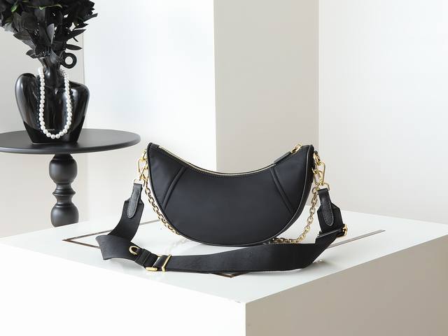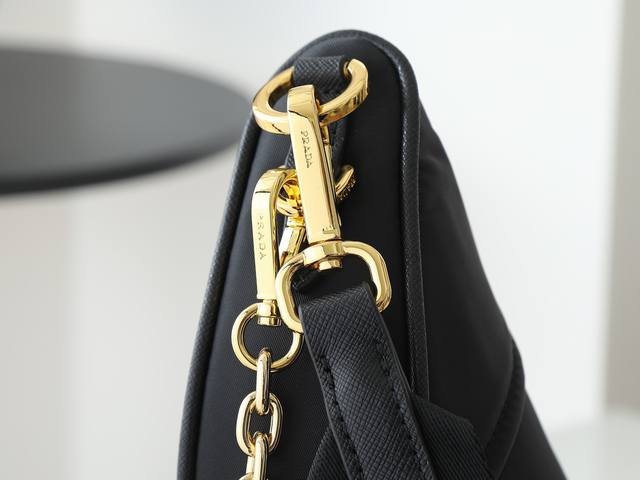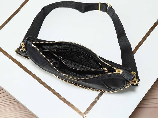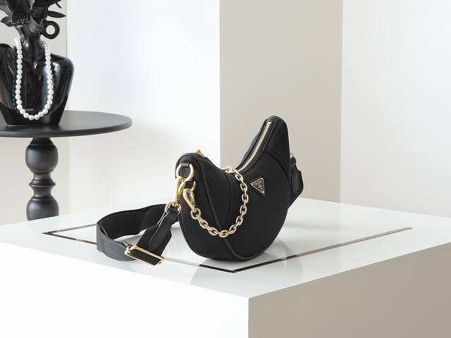 This Re-Nylon handbag is made of recycled nylon fabric, exquisite and versatile, combining archive style with practical contemporary style. The half-moon silhouette, with detachable sporty shoulder straps and elegant chain handles, can be carried in a variety of ways. It is perfect for crossbody, underarm bag and handbag. Hurry up and buy it