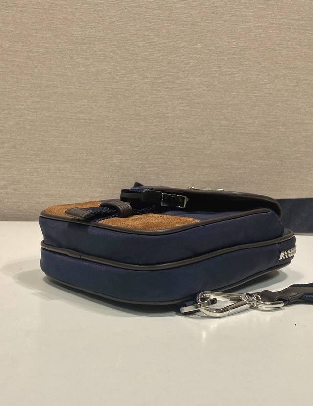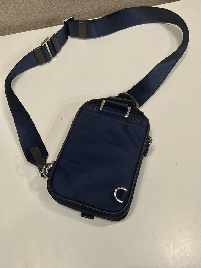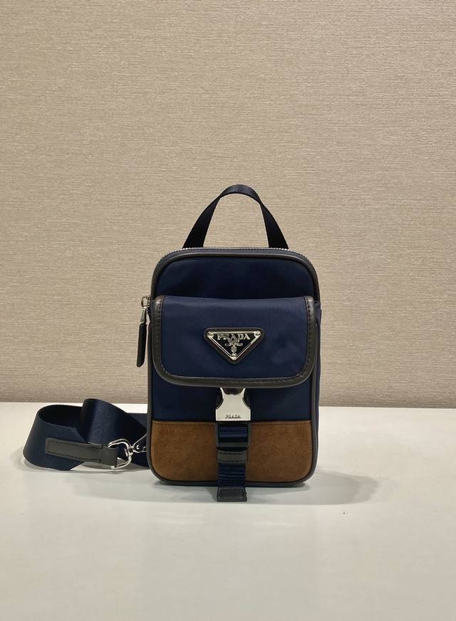 This smart phone case adopts a versatile modern design, decorated with a triangular logo, making recycled nylon meet Saffiano leather material, and can be carried by hand. The front buckle pocket design is another timeless hit