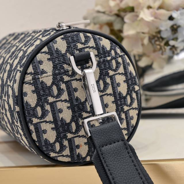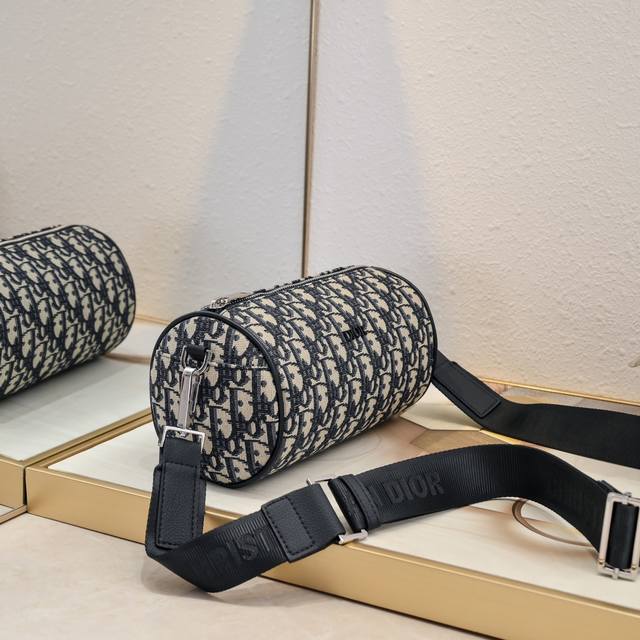 Original version with tiger head box Dior Early Spring new model with inner code Oblique printed canvas cylindrical bag Black cloth and black calfskin Adjustable and detachable shoulder strap with full logo details, unisex style. Model: Cd-1087 Size: 21