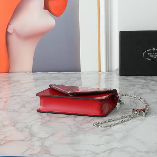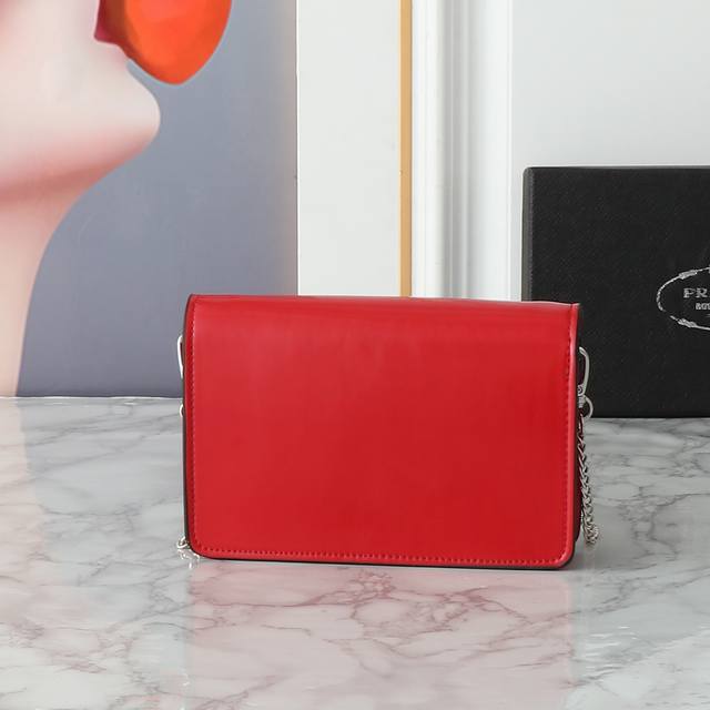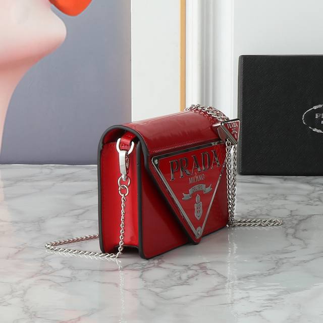 The new large triangle logo was originally designed by Mario, which highlights the trendy style of the bag. It is equipped with an adjustable and detachable chain shoulder strap 110 cm long. The simple and elegant style gives the bag a distinct modern style. It is so beautiful. The upper body effect is cool and generous. Hurry up and buy it