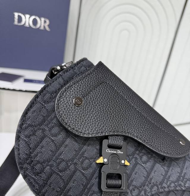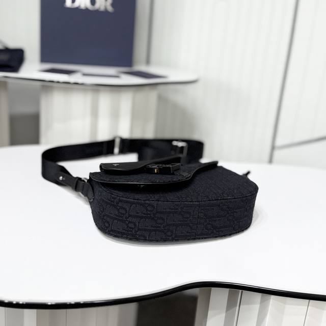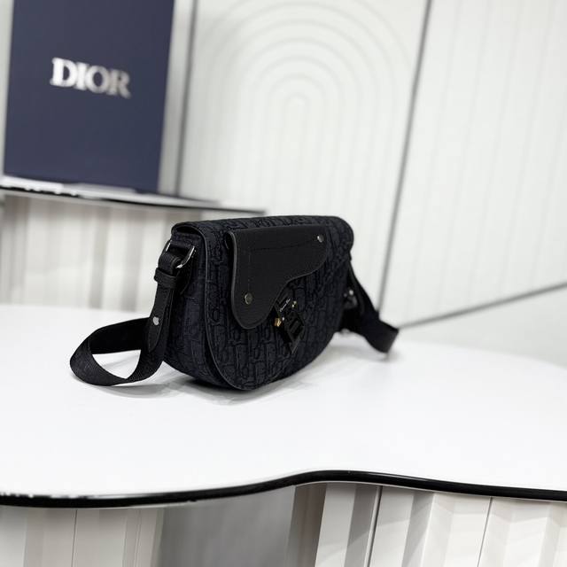 This Saddle Messenger Bag is a new product in the 2024 Fall Men's Collection, exquisite and fashionable. Crafted with black Oblique printed fabric, decorated with a saddle flap in the same color grained cow leather, and equipped with aluminum buckles to enhance the style. The spacious interior has a slip pocket for storing various daily necessities, and is equipped with an adjustable Christian Dior nylon jacquard shoulder strap, which can be carried on the shoulder or crossbody.