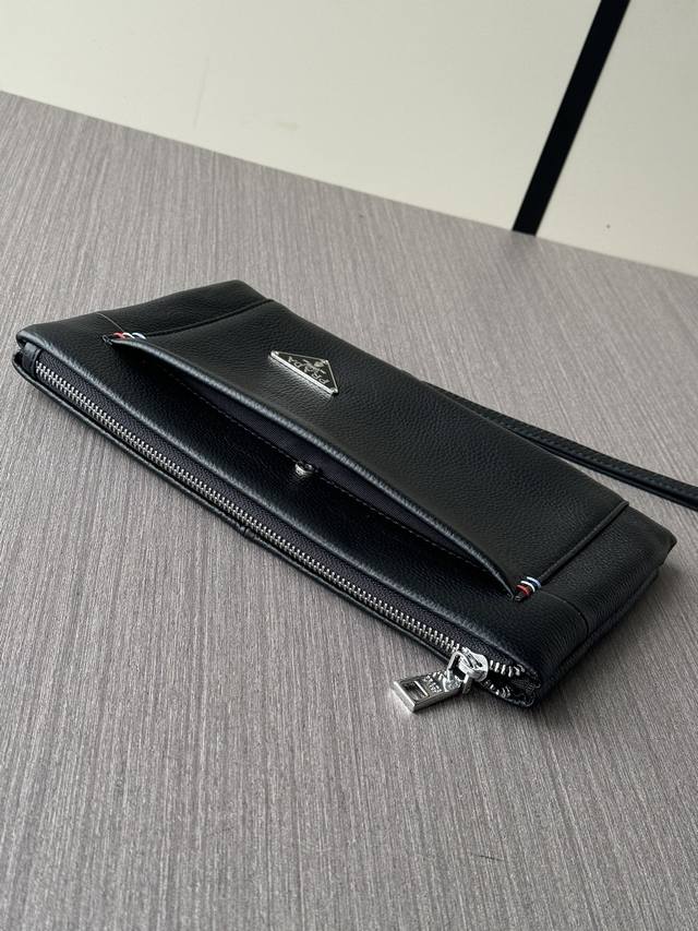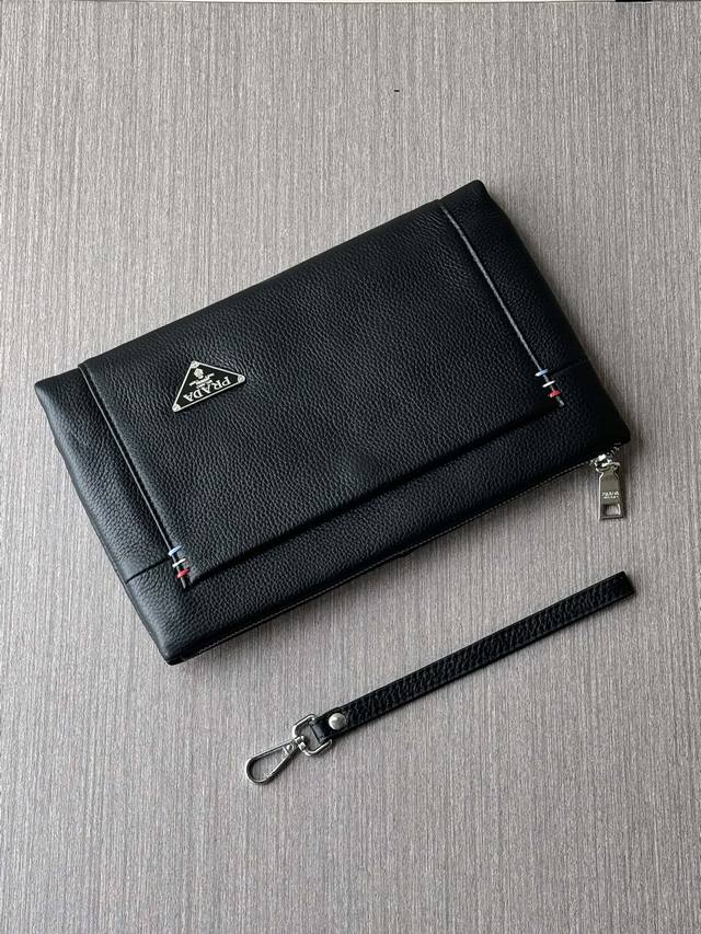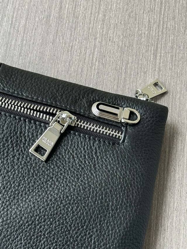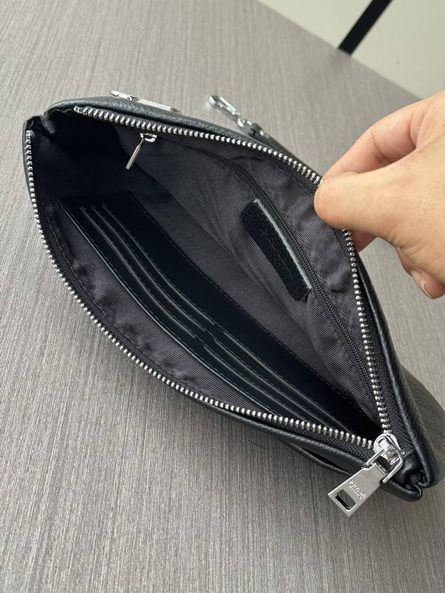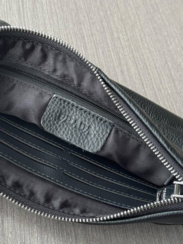 The latest hot Prada clutch bag from the top counter is now shipping in large quantities. We are not good at talking about the top counter goods and bragging about them on paper. Please let the goods speak. The style can be copied and plagiarized, but the materials and workmanship cannot deceive those who understand. The inside and outside are all top materials, top imported original leather, Italian imported calfskin grain, ultra-high-definition hardware logo, high-end hardware, special high-end pure cotton lining, special Ykk puller, imitation burst teeth, the smoother the zipper is pulled, the top oil edge is super smooth, top designers create unique leather, imported first-layer cowhide embossed leather grain style production, super large capacity space, multi-compartment design, mobile phone position + dark pull zipper position, super comfortable feel, soft wear-resistant leather grain, clear, one-inch five-needle stitch, top master craftsman, the texture is impeccable, unique, atmospheric and connotative. Top workmanship, exquisite attention to every detail! Color: black, model: 2011 size: 27-17-2