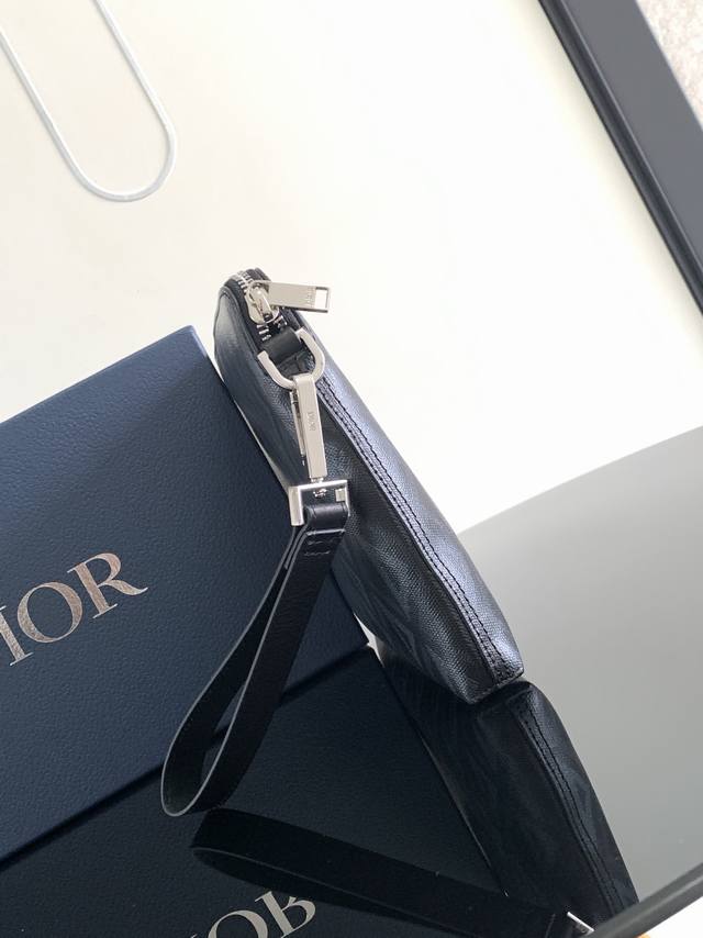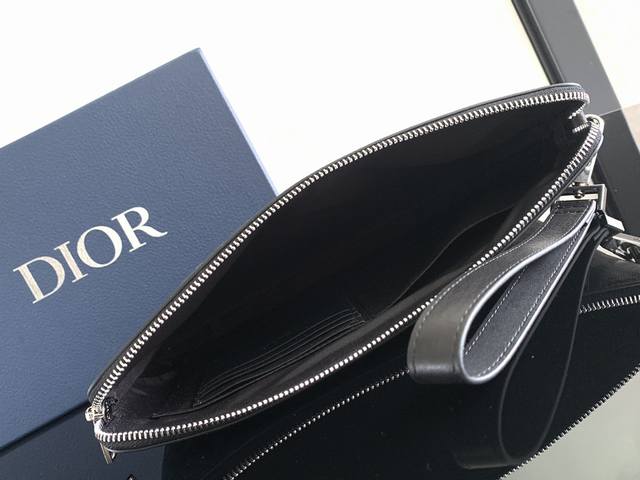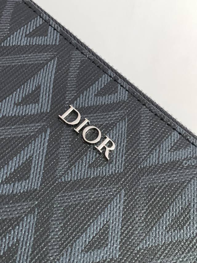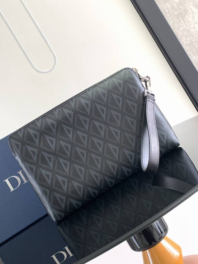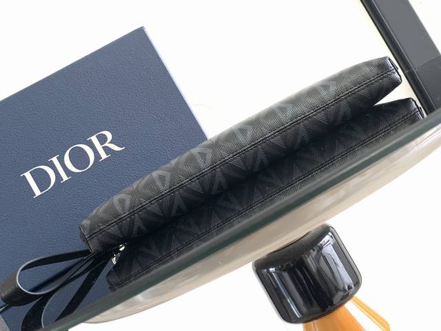 Thick Top Original This A5 Clutch is an elegantly simple accessory. Crafted in Dior Grey Cd Diamond canvas, inspired by the Dior archives, it is decorated with tonal smooth calfskin leather details. Zippered compartment with a flat pocket for a card holder. With a removable leather strap, it can be carried by hand or slipped into the bag.