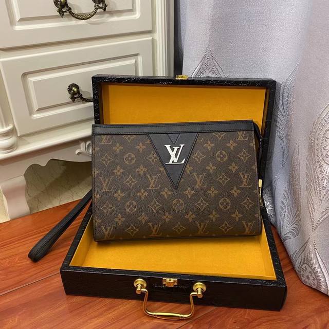 Top-grade original new style clutch bag has arrived. Imported cowhide. With special lining. The workmanship is in detail, every part is extremely exquisite and delicate. The best product in the market, always insisting on high-end boutiques, the quick ones will make money, don't say you didn't remind me if you act late, the best source of physical stores Color: Coffee flower, size: 28-21-6 Model 33020-5