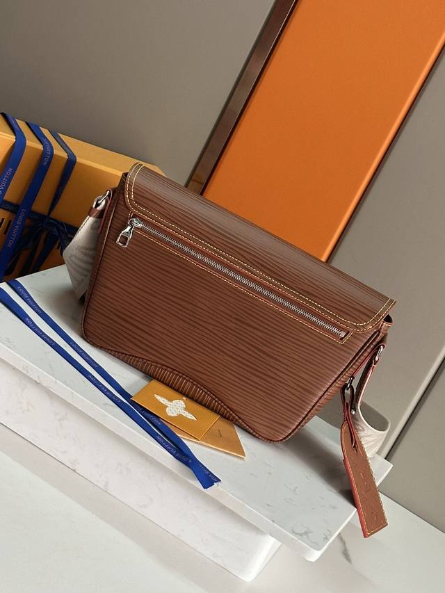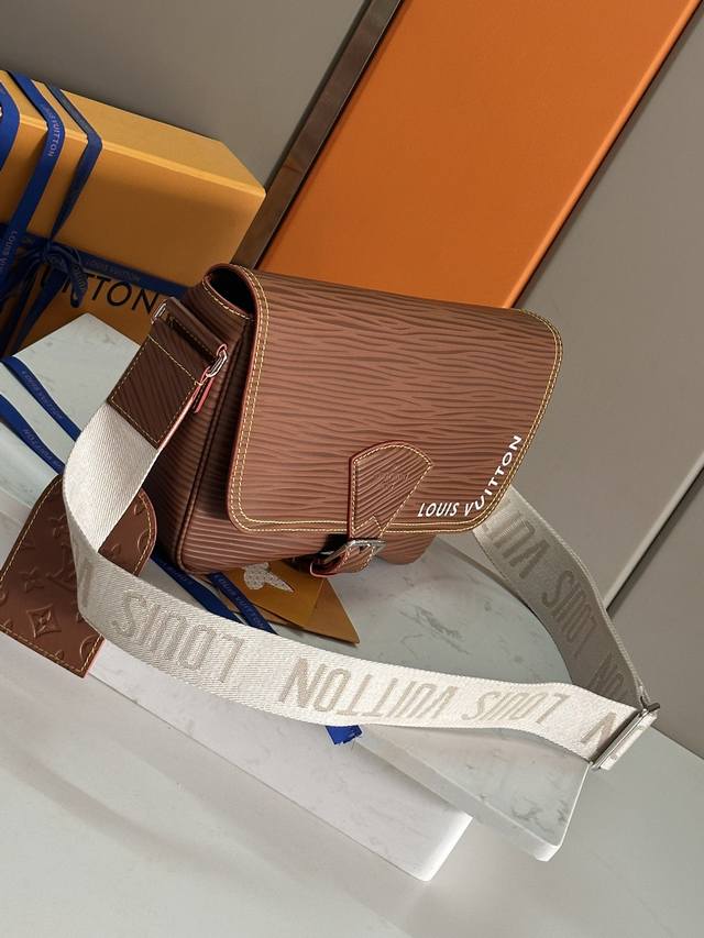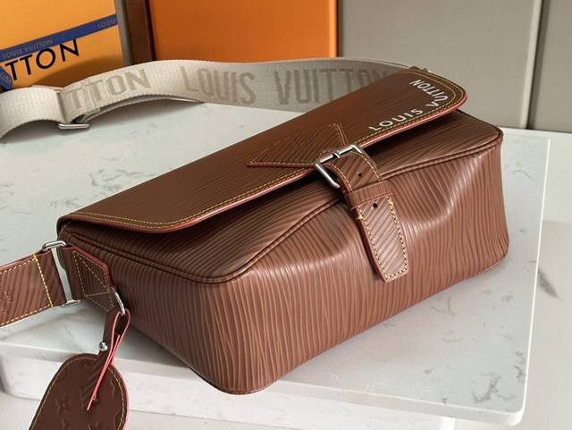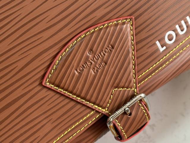 This spacious Aly Montsouris messenger bag is made from soft calfskin and embellished with the brand's Epi embossed pattern, with a modern look. The bag is equipped with multiple pockets and compartments for easy access to essentials, and is equipped with a signature textile shoulder strap and a buckle inspired by the archive, reflecting the distinctive and outstanding Louis Vuitton style. The design is light and soft, and it is perfect for crossbody carry.