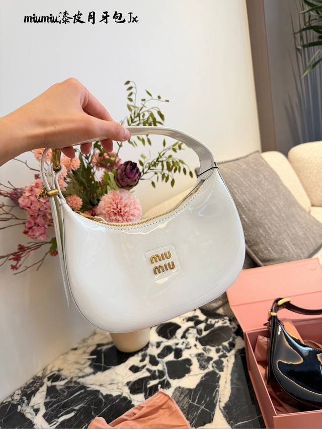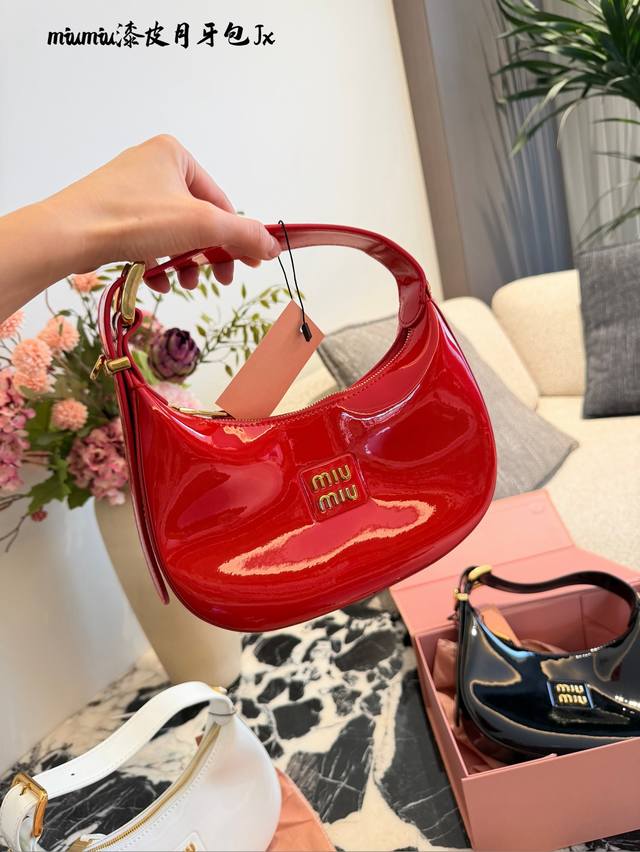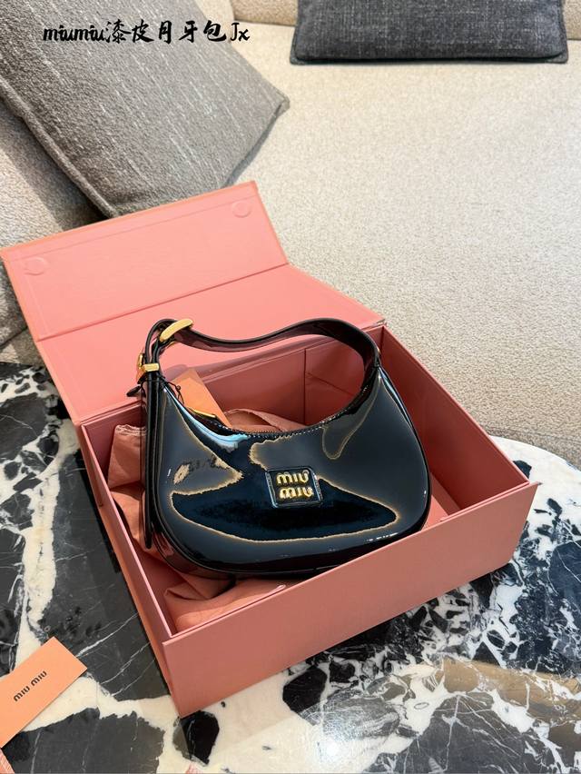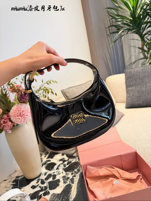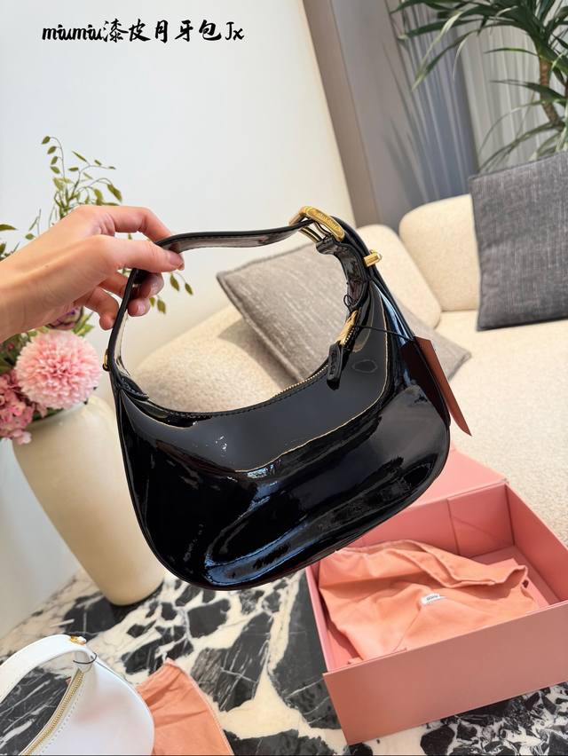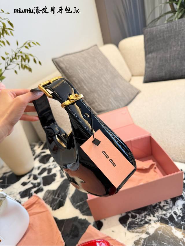 Miu Miu Patent Leather Wangder Hobo Bag DDD T+ This Miu Miu Wangder Hobo bag is made of black patent leather with a perfect sheen. The gold hardware and logo make it highly recognizable. 20cm with box DDD