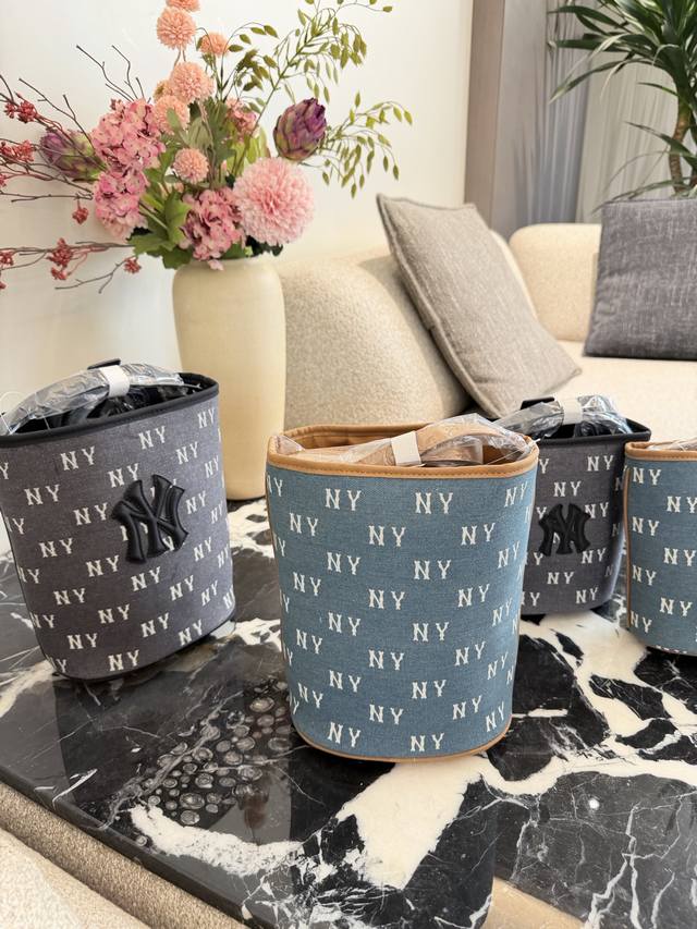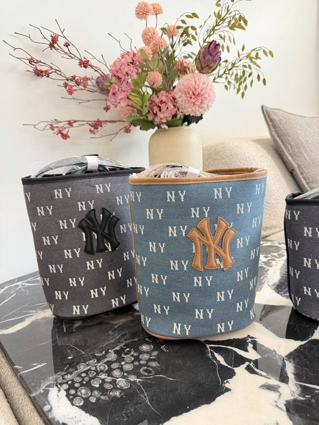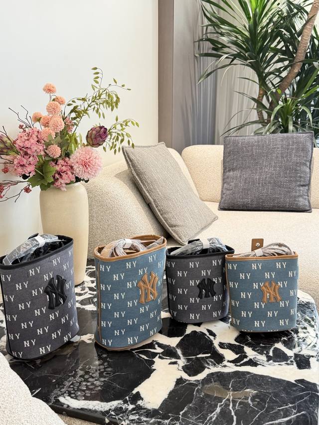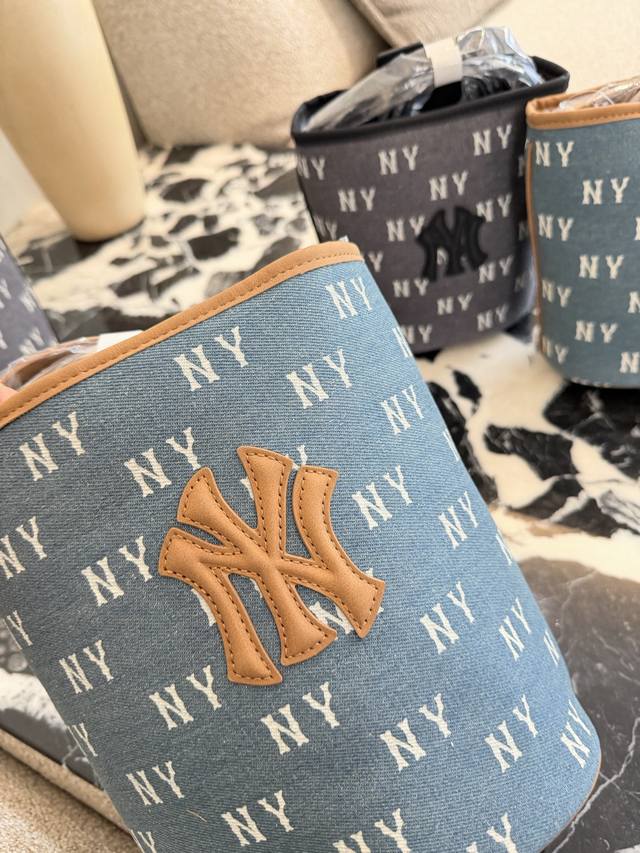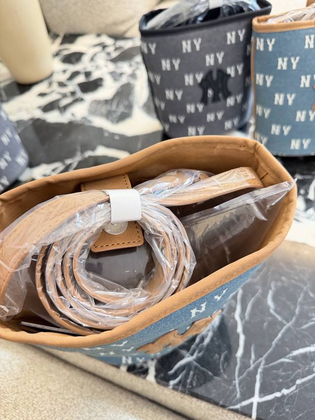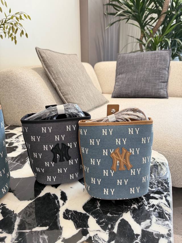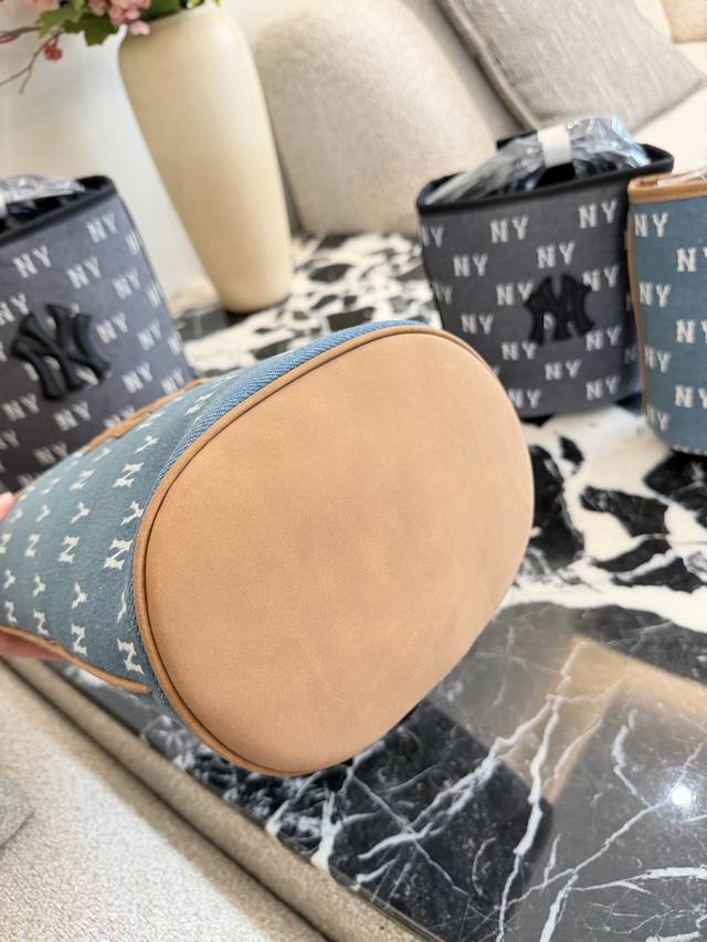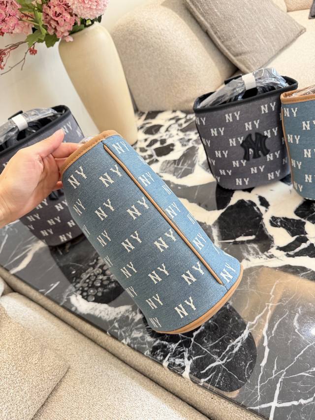 Mlb Monogram Denim Bucket Bag DDD Ml B 25 Autumn New Monogram Denim Bucket Bag, light blue denim + Ny all-over print, brown leather trim, full of retro American sporty style DDD Large: 15X23X7 cm. Small: 11.5X18X5.5 cm. DDD Airplane box packaging DDD