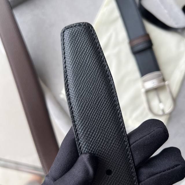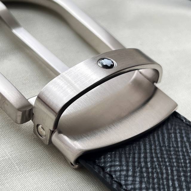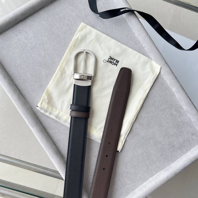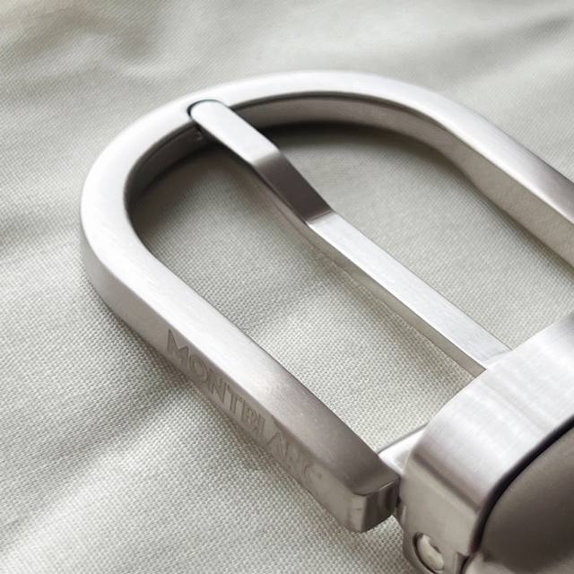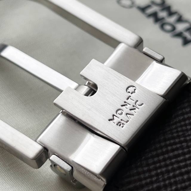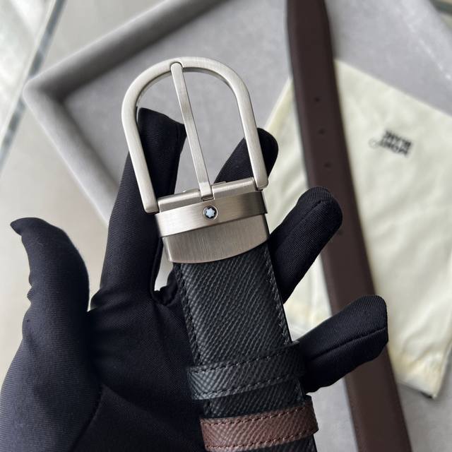 35mm horseshoe-shaped buckle with black and brown reversible leather strap. This 35mm horseshoe-shaped buckle features a shiny ruthenium-plated finish. Adjustable length: 3.5cm x 120cm. This reversible black and brown strap creates a classic, dynamic look. Item No. Mb128803 Material: Primary Material: Leather. Strap Description: Reversible black and brown cowhide leather strap. Leather Pattern: Montblanc's six-pointed white star logo on the metal ring. Clasp: Easy-open mechanism for adjustable strap length. Buckle Shape: Horseshoe. Primary Color: Black and Brown. Buckle Type: Pin buckle.