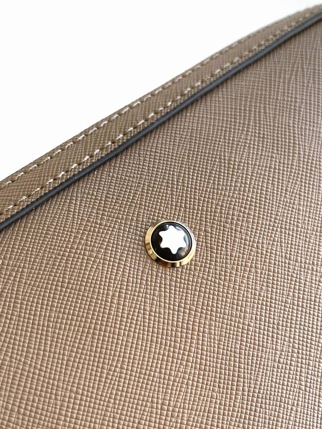 Crossbody Bag Model: 130308# Khaki color. Dual-use: Can be worn cross-body or as a clutch. Black, exclusive top-grain cowhide leather. The Montblanc Classic Collection upholds the brand's rich tradition. The full range includes a wide selection of large and small leather goods, blending business and casual styles, a perfect blend of contemporary design and classic elegance. Made of top-grain cowhide, a high-fiber fabric lining, and exclusive hardware, the quality is exceptional. Dimensions: 24x17x4