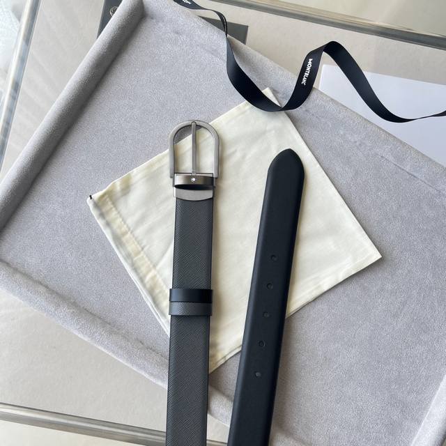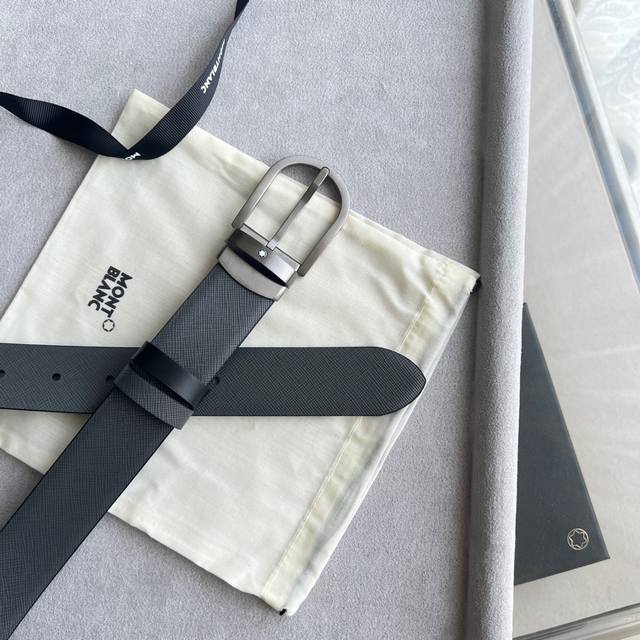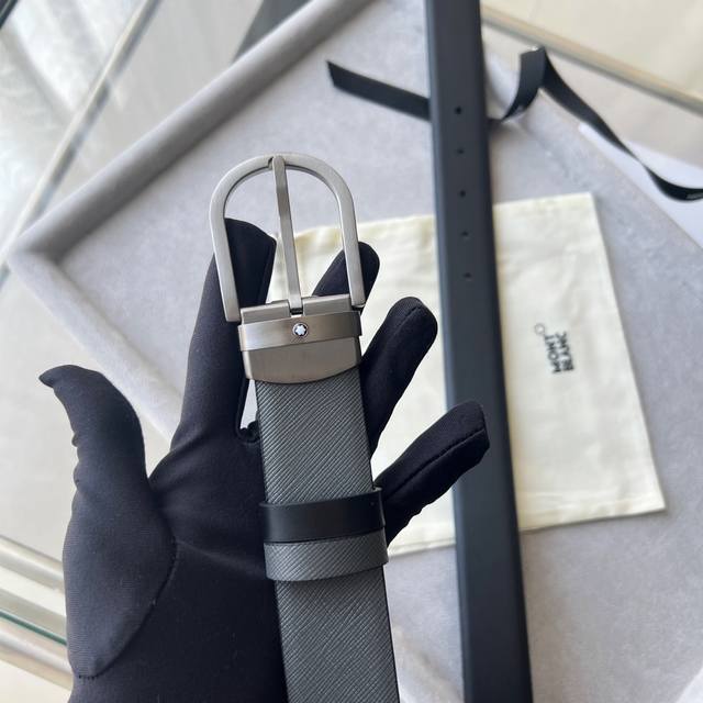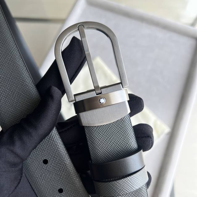 Horseshoe-shaped buckle, black and gray reversible leather strap, 35mm
