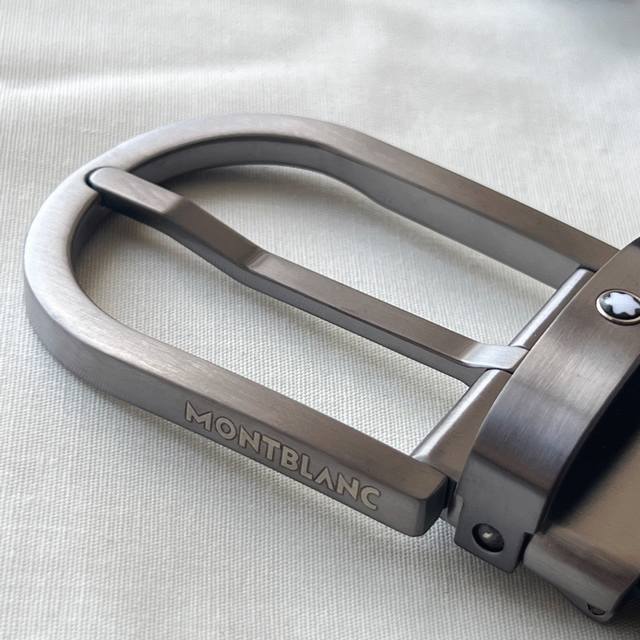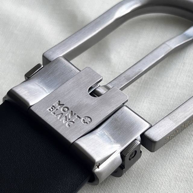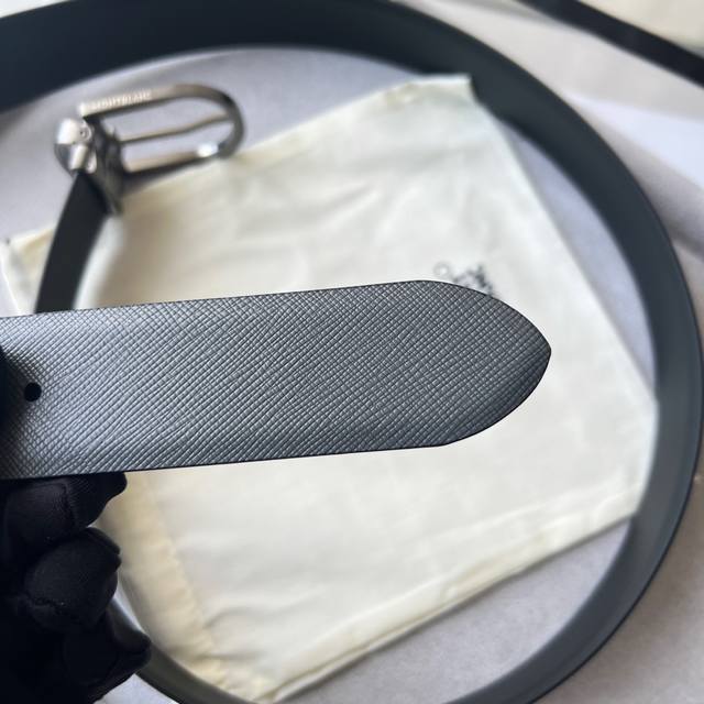 . This 3.5cm x 120cm horseshoe-shaped buckle features a shiny ruthenium-plated finish. This reversible black and gray strap offers a classic, dynamic look.