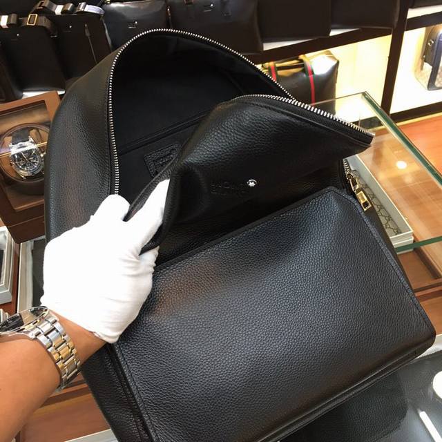 Model: 5604# Top-quality original Montblanc Italian natural calfskin backpack, incredibly soft and delicate to the touch, identical to the one sold in boutiques, absolutely high-end. High-fiber black lining, boutique hardware, superb quality. Dimensions: 32X16X40 DDD