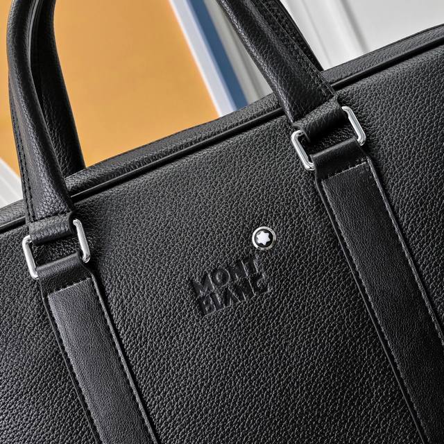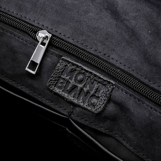 Montblanc leather men's briefcase, handbag, and laptop bag, featuring exquisite