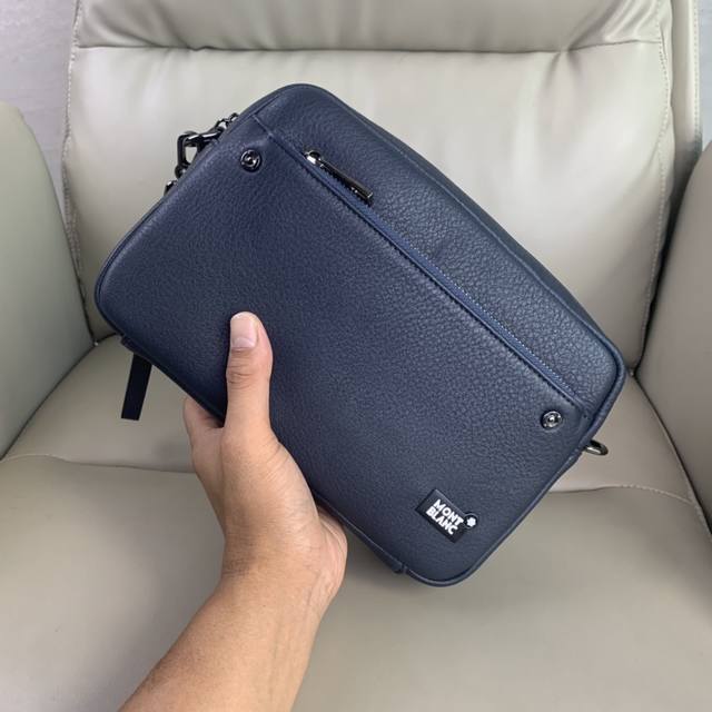 Top-tier boutique items, the latest hot-selling Montblanc clutch and shoulder/crossbody bag, universal style, are now available in large quantities! Those who claim to be boutique-quality or top-tier originals won't just talk the talk; let the quality speak for itself. Styles can be copied, but the materials and craftsmanship can't fool those in the know. Made entirely of top-quality materials, including premium imported Italian calfskin, ultra-high-definition hardware with the logo, boutique hardware, boutique lining, dedicated YKK zipper pulls, super-smooth imitation snap zippers, top-quality edge finishing, a unique leather design created by a top designer, extra-large capacity with multiple compartments, phone slot + concealed zipper, super comfortable and soft feel, wear-resistant leather with clear texture, five stitches per inch by top craftsmen, the quality is impeccable, unique, sophisticated and elegant. Top-notch workmanship, meticulous attention to every detail! Colors: Black, Blue. Model: 8 3-3. Size: 27-18-6.