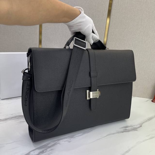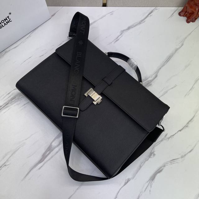 Model: 6032-1 Black Hand-Stretched Leather DDD #Top-quality original Montblanc new steel lock flap briefcase, high-gloss and classy, high-fiber fabric lining, boutique hardware, superb quality. Dimensions: 39X28X7-- DDD