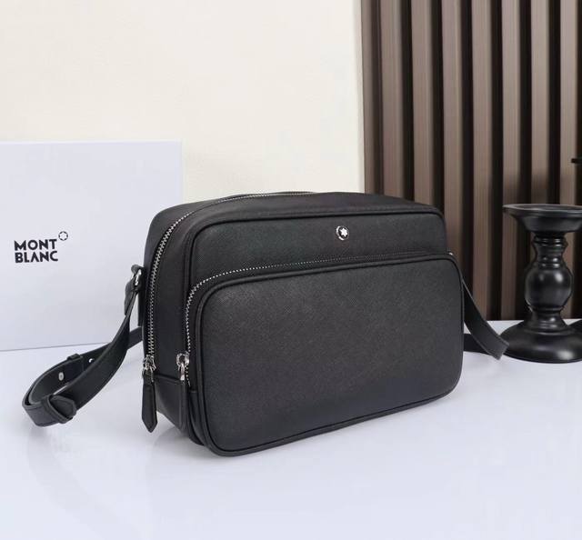 Montblanc Brand New Masterpiece Collection Messenger Bag, Classic Black. Model: Mb198127#. Material: Top-grain cowhide leather. Style: High-quality replica purchased from Montblanc boutiques, supports comparison with boutiques. Packaging: Boutique packaging bag. Dimensions: 25.5*17*7 cm.