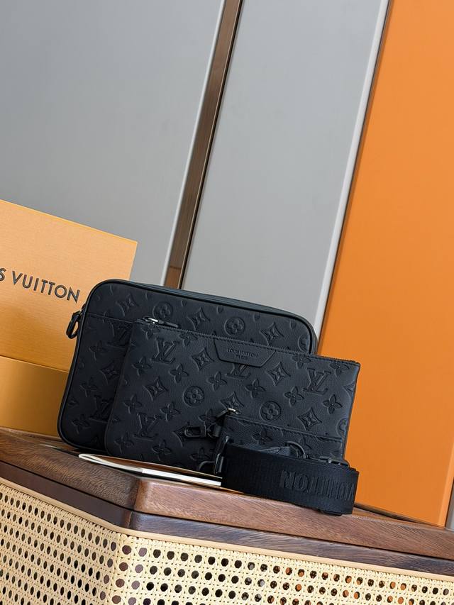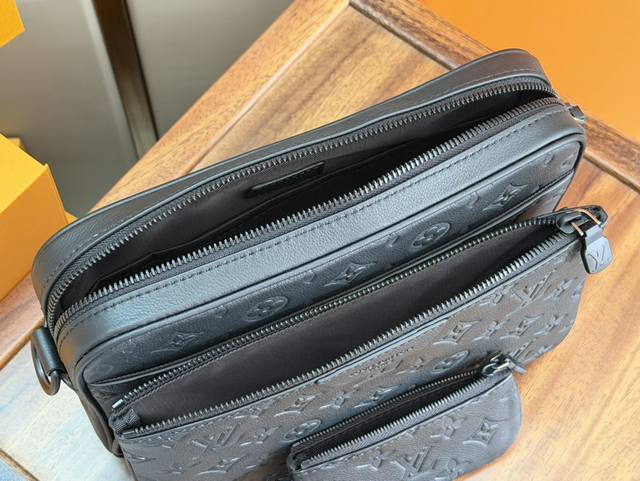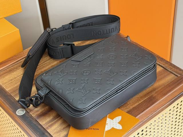 163C01 Dynamic Chip Top-Tier Original Trio Messenger Bag M27925 Dark Blue 26713 Black Striped Embossed DDD Made of supple Monogram Shadow Hx calfskin leather, featuring a Monogram Shadow leather strap and main compartment. The zippered front pocket, shoulder strap, and coin purse are all detachable. The shoulder strap is also adjustable for a comfortable and snug fit. DDD Dimensions: 18.5 x 7 x 25 cm DDD