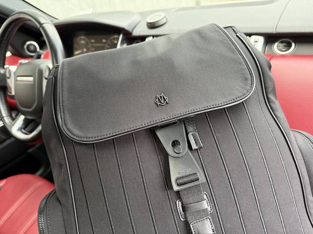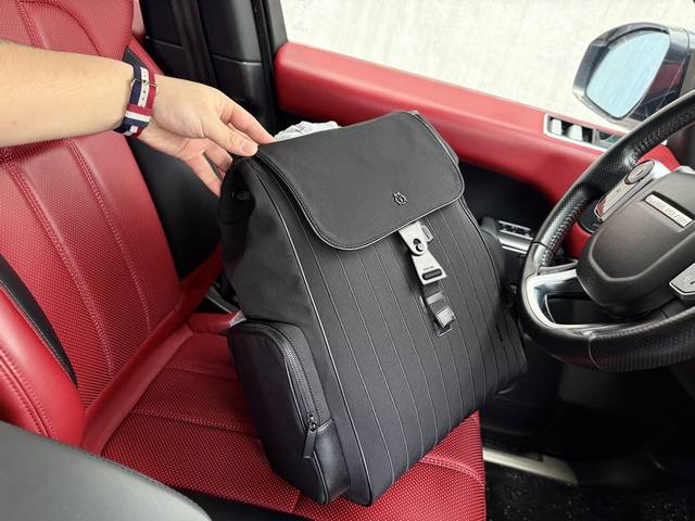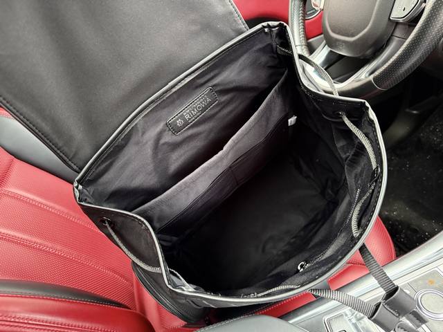 A new high-end Rimowa Never Still backpack. Large, unisex canvas backpack with brand logo. Black, couple's style. Features an internal laptop compartment, a hidden zippered pocket, high-definition hardware logo, and a dedicated lining. Smooth zippers, smooth edges, and exquisite craftsmanship, every detail is meticulously crafted! A must-have for trendy men. Dimensions: 37 x 44 x 16 cm.