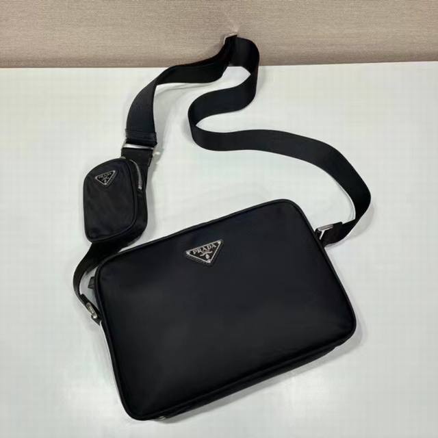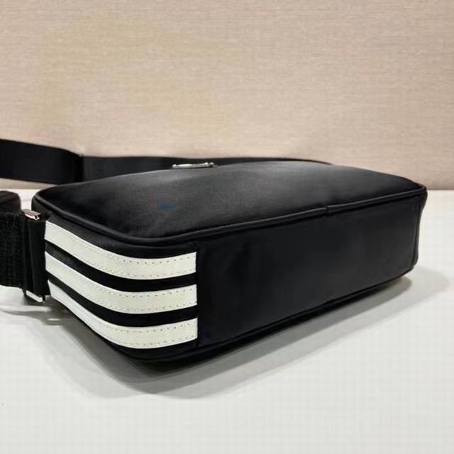 Ad and pd Collaboration Design 2Vh142 This Ad and pd collaboration crossbody bag is made of Re-Nylon and Saffiano leather. It features Ad's classic three-stripe leather detailing on the side and a co-branded eco-friendly label. It includes a detachable pouch. It looks exceptionally novel and casual, and looks fantastic on! Grab it now! Dimensions: Length 25cm x Height 19cm x Base 7cm