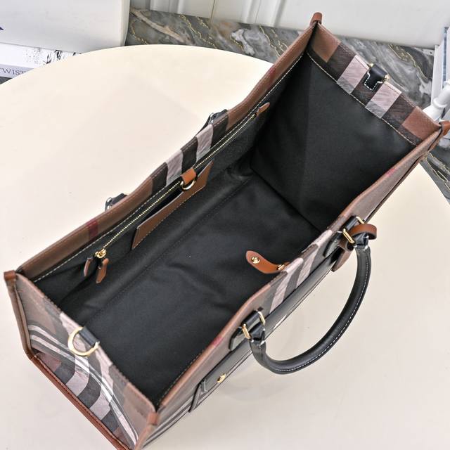 Beauty's latest birchwood check tote bag is crafted from checkered material and top-stitched leather. It can be carried by the top handle or the adjustable crossbody strap. At least 30% of the main materials in this exquisite piece are bio-based. Bio-based materials are primarily derived from renewable natural resources such as plants and castor oil. Waterproof, stain-resistant, and durable, this is a must-have item. 638390 DDD Dimensions: 40 x 16 x 30 cm DDD