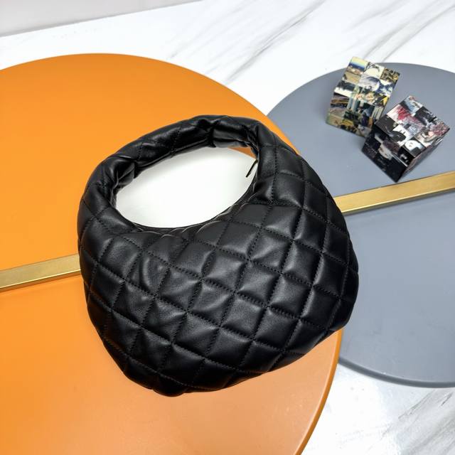 Icare Baby Nappa Lambskin Handbag. This highly anticipated croissant-shaped bag makes a dazzling debut, embellished with the iconic metal logo. It perfectly blends retro and modern sensibilities, making it one of this season's most anticipated It Bags. Whether it's a daily outing or a night out, this bag is effortlessly stylish!