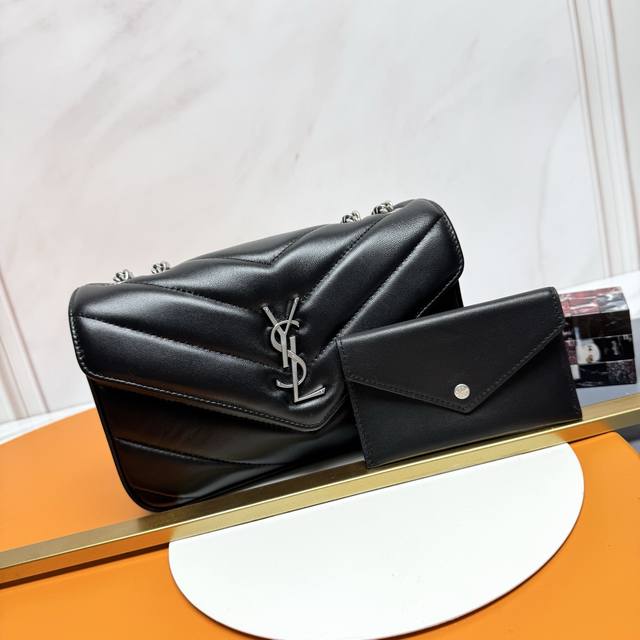 Black Lambskin Silver Gold Ddd 25 Early Spring New Loulou Small Size, exquisite and high-end texture! The lambskin is soft and supple to the touch, and the new version has a beautiful sheen. It comes with a detachable cardholder and a sliding chain. The double chain design offers multiple carrying options to suit your needs. The new lambskin has also been coated, making it more durable and glossy, making the whole bag exceptionally refined and beautiful! A must-have item for fashionable girls. Ddd Model: 801437 Original Leather Ddd Size: 24X14X7Cm DDD