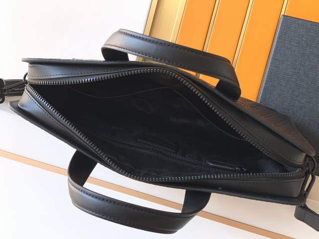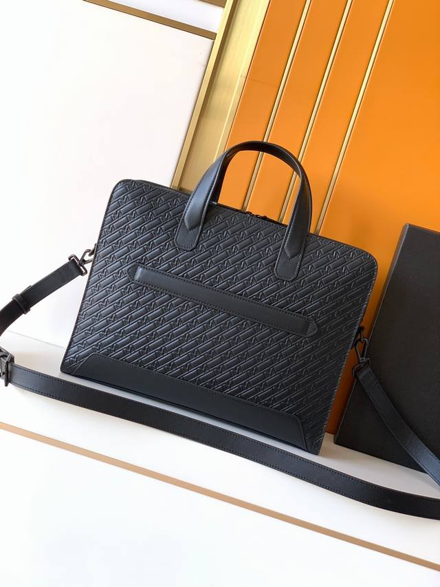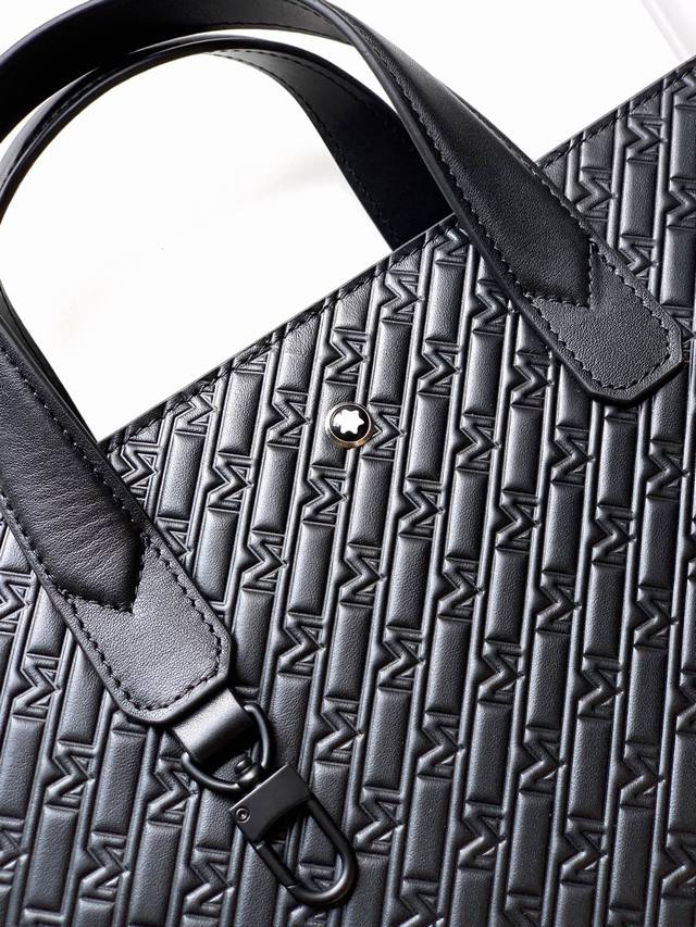 Briefcase: 129975# Black, exclusive top-grain cowhide with embossed pattern. The Manbao Classic Craftsmanship series upholds the brand's long-standing tradition. The full range includes a wide range of large and small leather goods, blending business and casual styles, and embodying contemporary design and classic elegance. Made of top-grain cowhide, high-fiber fabric lining, and exclusive hardware, the quality is exceptional. Dimensions: 37x28x7--
