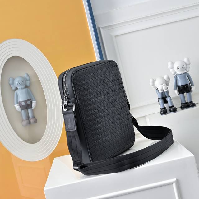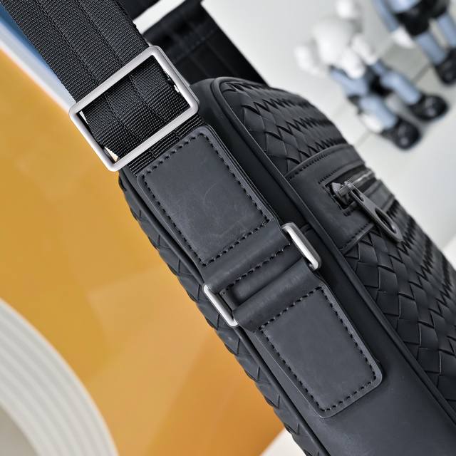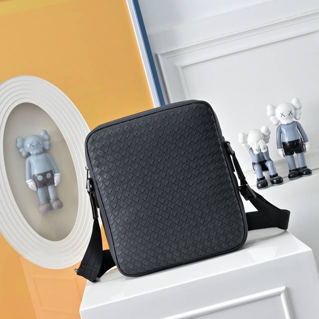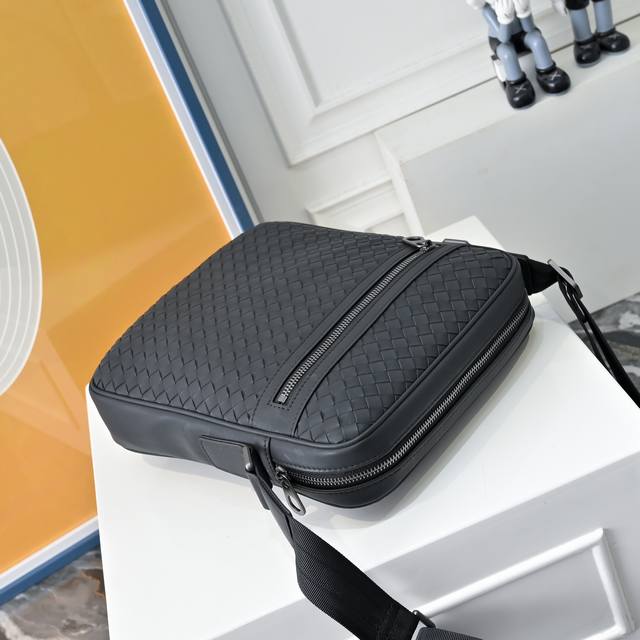 Bv men's one-shoulder small crossbody messenger bag. Its shape is so simple and its secret is well-known to the world. It adheres to the traditional handmade method and imported waxed cowhide braided gunmetal color electrophoresis accessories. The low-key and practical leather features a glossy appearance with use. The more youthful design allows fashion to penetrate into work and easily accommodate personal belongings. Color: Black, Size: 24-28-7