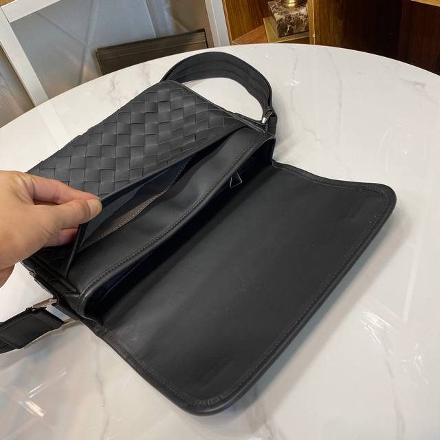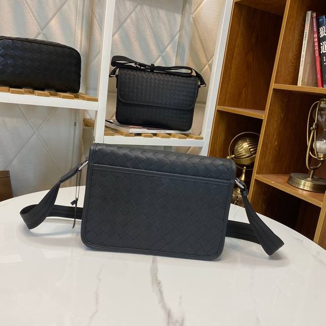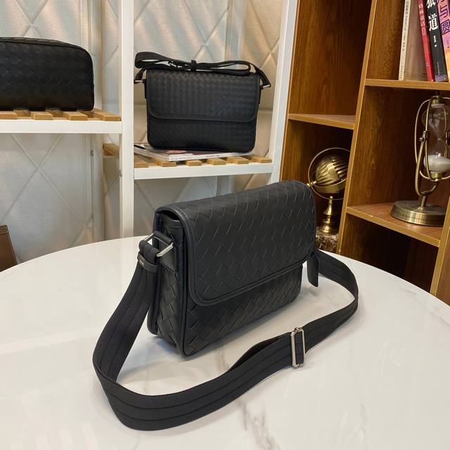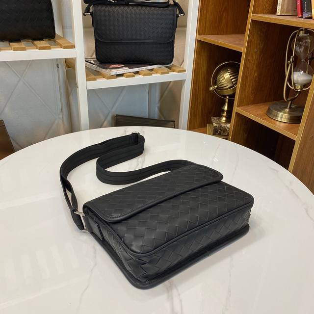Bv woven messenger bag is a popular item. This messenger bag is made of pure hand-woven fabric. The soft imported waxed calfskin trim gives it a unique square silhouette. The low-key and practical leather becomes more shiny with use. Model: 831#, Color: Black, Specifications: 28*18*6cm.
