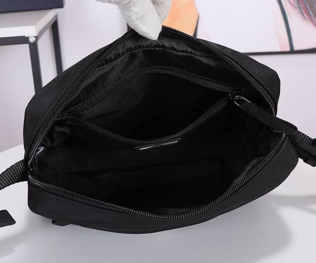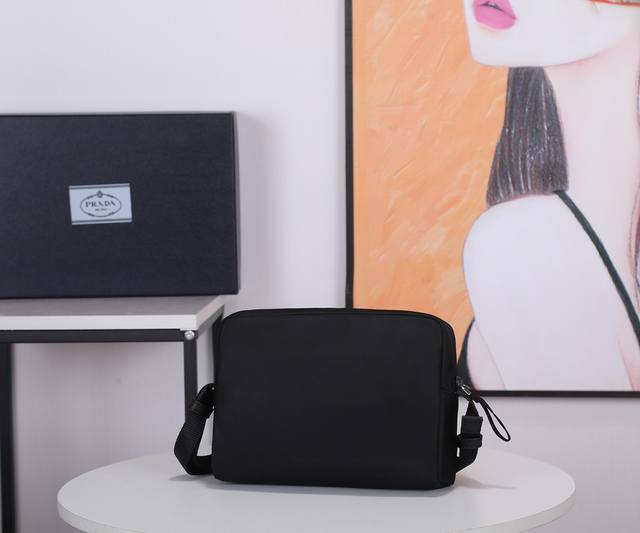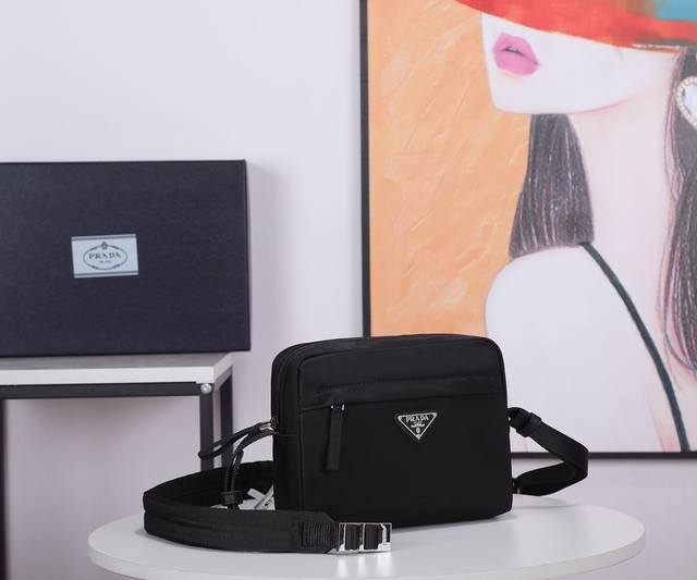 Classic New Style 2Vh047, Newly Arrived Authentic Stock Made From Imported Nylon Material, Saffiano Leather Trim, Polished Steel Hardware, Adjustable Fabric Shoulder Straps, Enameled Triangular Logo On The Exterior, Internal Logo Label, And A Zipper Closure At The Top.