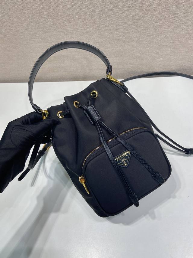 Classic Style 1Bh1864 Upgraded Small Size Ddd This bucket bag is made of imported nylon fabric, with an upgraded drawstring closure and cross-grain cowhide leather. It's top-grade (Level 5) leather, can be carried by hand or worn crossbody, and is lightweight, practical, and stylish. Ladies, grab one now! Size 165 (manufacturer's code), Length 16cm x Height 21cm x Bottom 10cm DDD