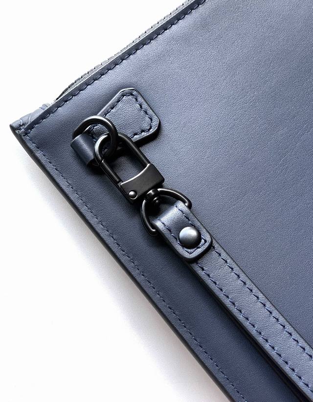 Clutch: 129976# Blue, exclusive top-grain cowhide with embossed pattern. The Wanbao Classic Craftsmanship series upholds the brand's long-standing tradition. The full range includes a wide range of large and small leather goods, blending business and casual styles, and embodying contemporary design and classic elegance. Made of top-grain cowhide, high-fiber fabric lining, and exclusive hardware, the quality is exceptional. Dimensions: 30x20x1--