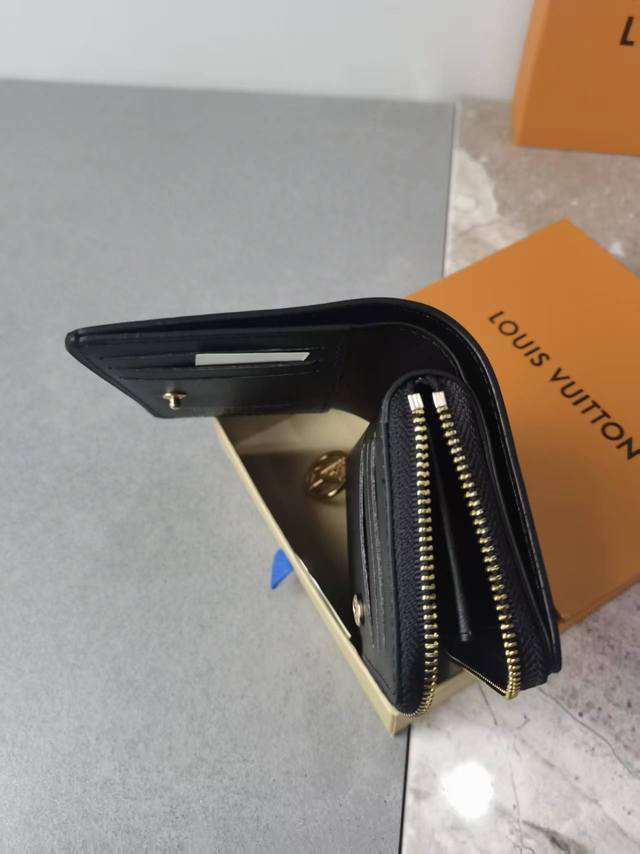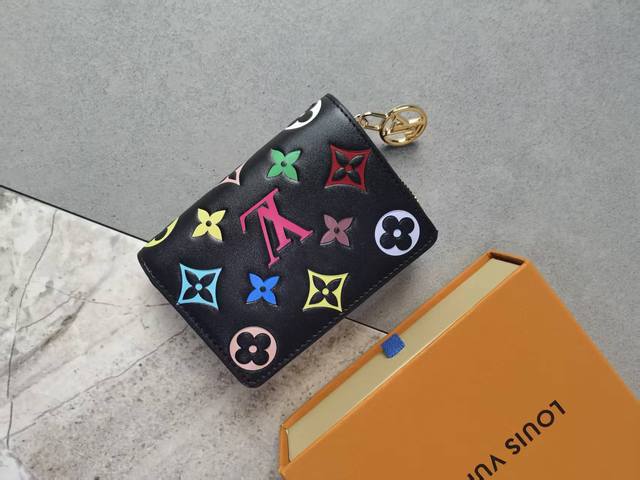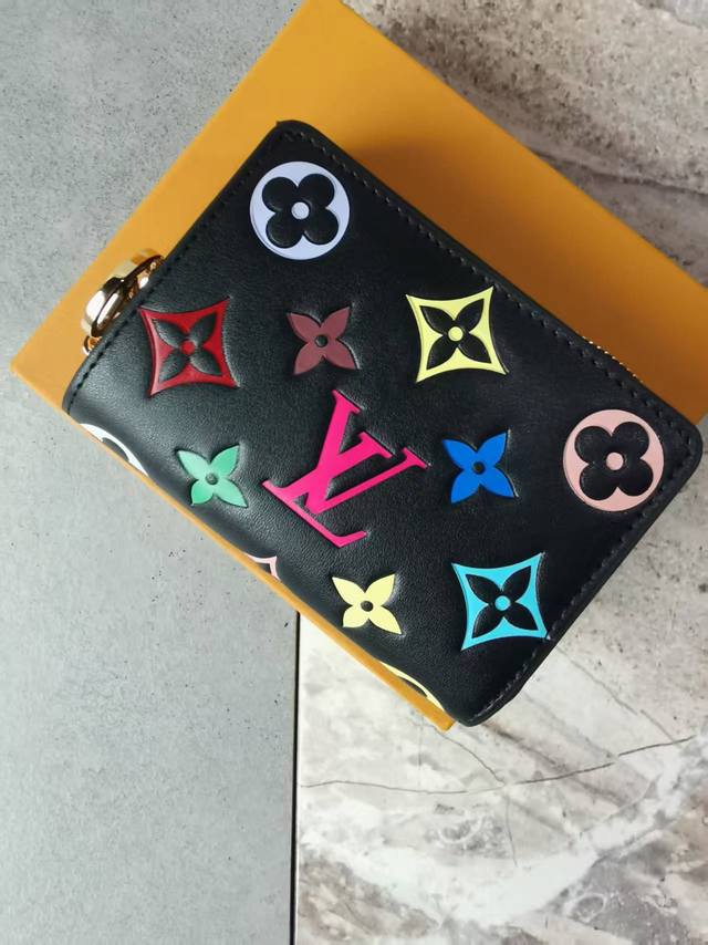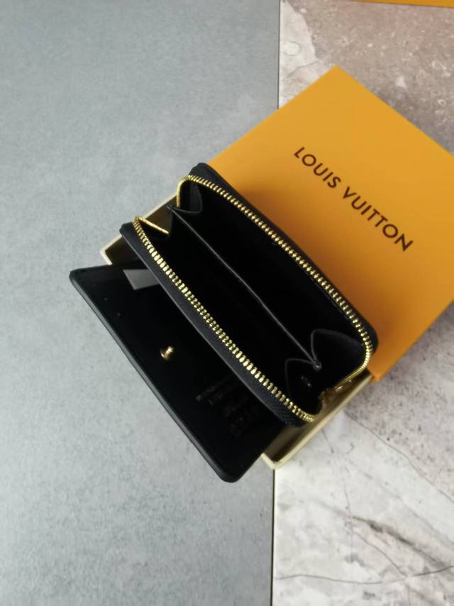 Color: Black Size: 11X9M 12378 Lou Coussin wallet is made of soft sheepskin leather with a classic Monogram pattern embossed to create a fluffy effect. The exquisite square shape hides ample space, with a card slot, a bill compartment and a side zippered coin pocket. The pink embossed design makes it more eye-catching.
