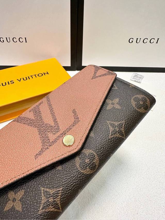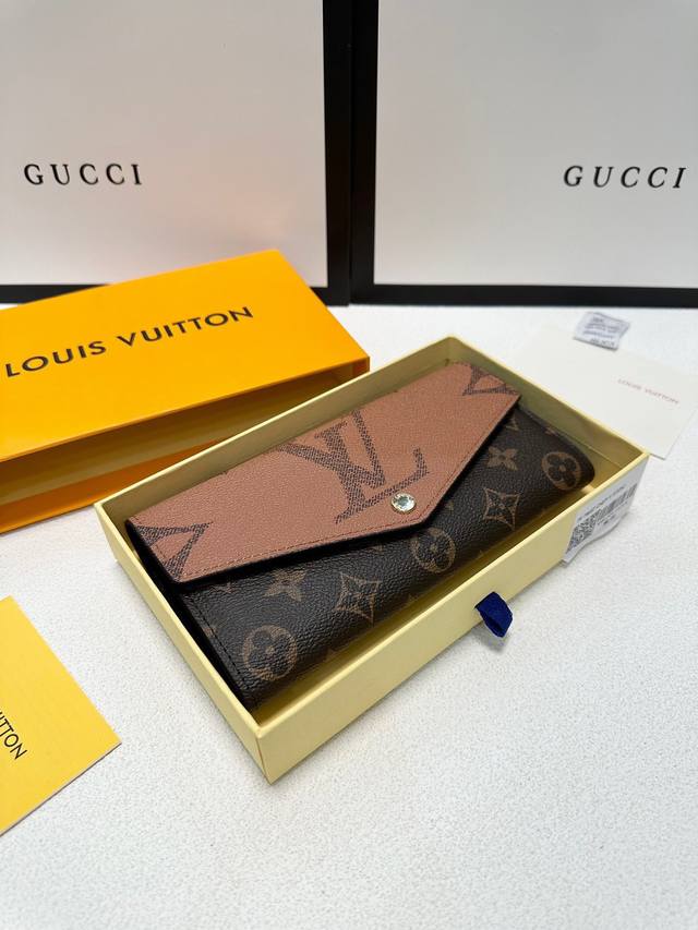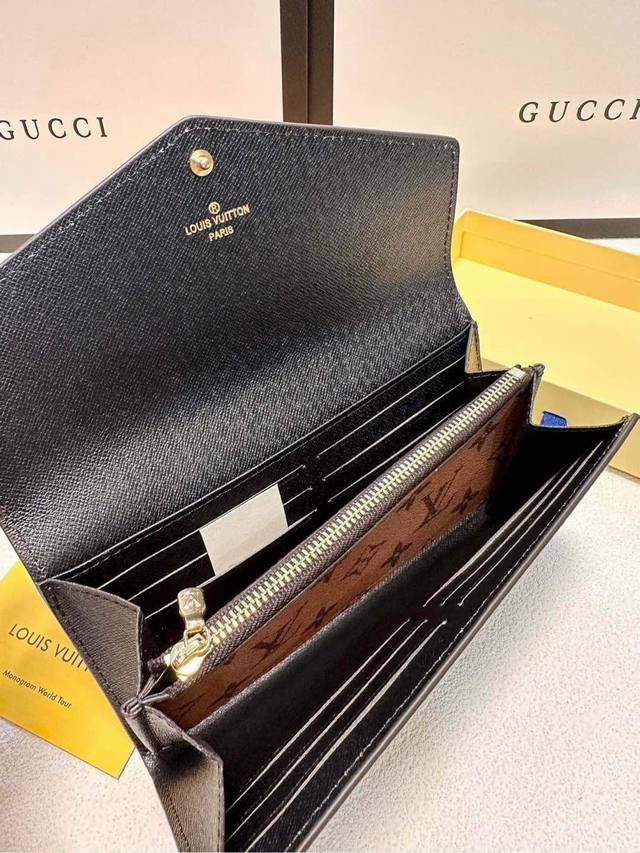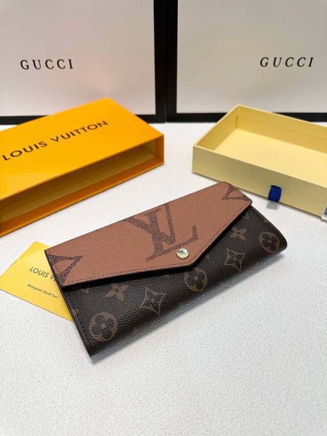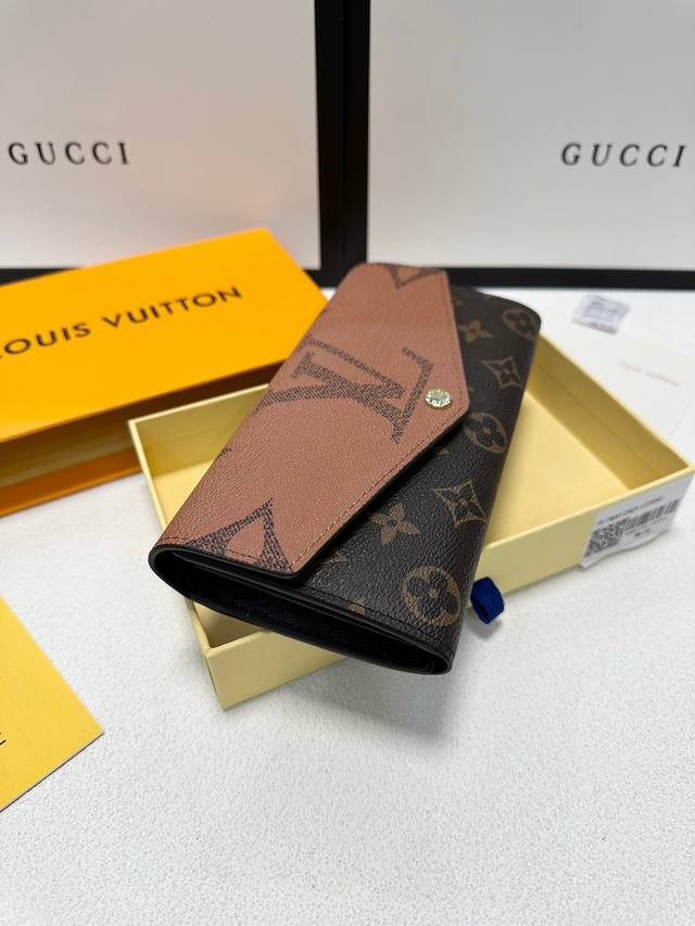 Color Yellow Size 19X10.5X2 Sarah wallet uses Monogram and Monogram Reverse Giant canvas to reproduce the classic square configuration, and is lined with cowhide. The well-organized interior space has pockets and card slots, and the envelope-style flap is decorated with inscription buttons