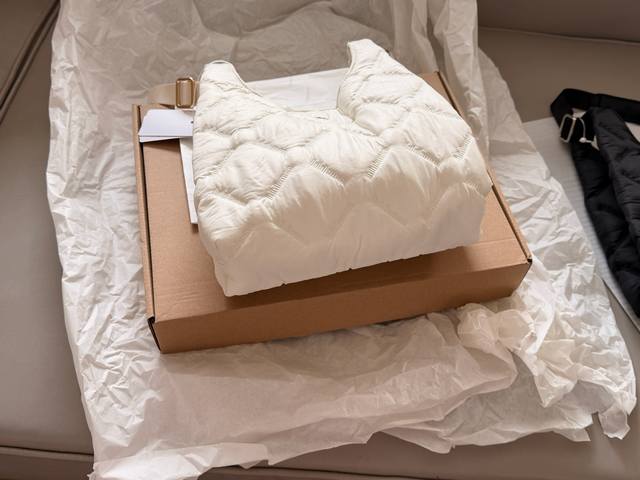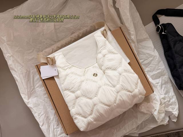 Comes with box DDD Size: 27*23Cm Ddd The Lulu down bag is super cute Ddd It looks small but it can hold quite a lot. It's so soft and cozy to carry in winter DDD